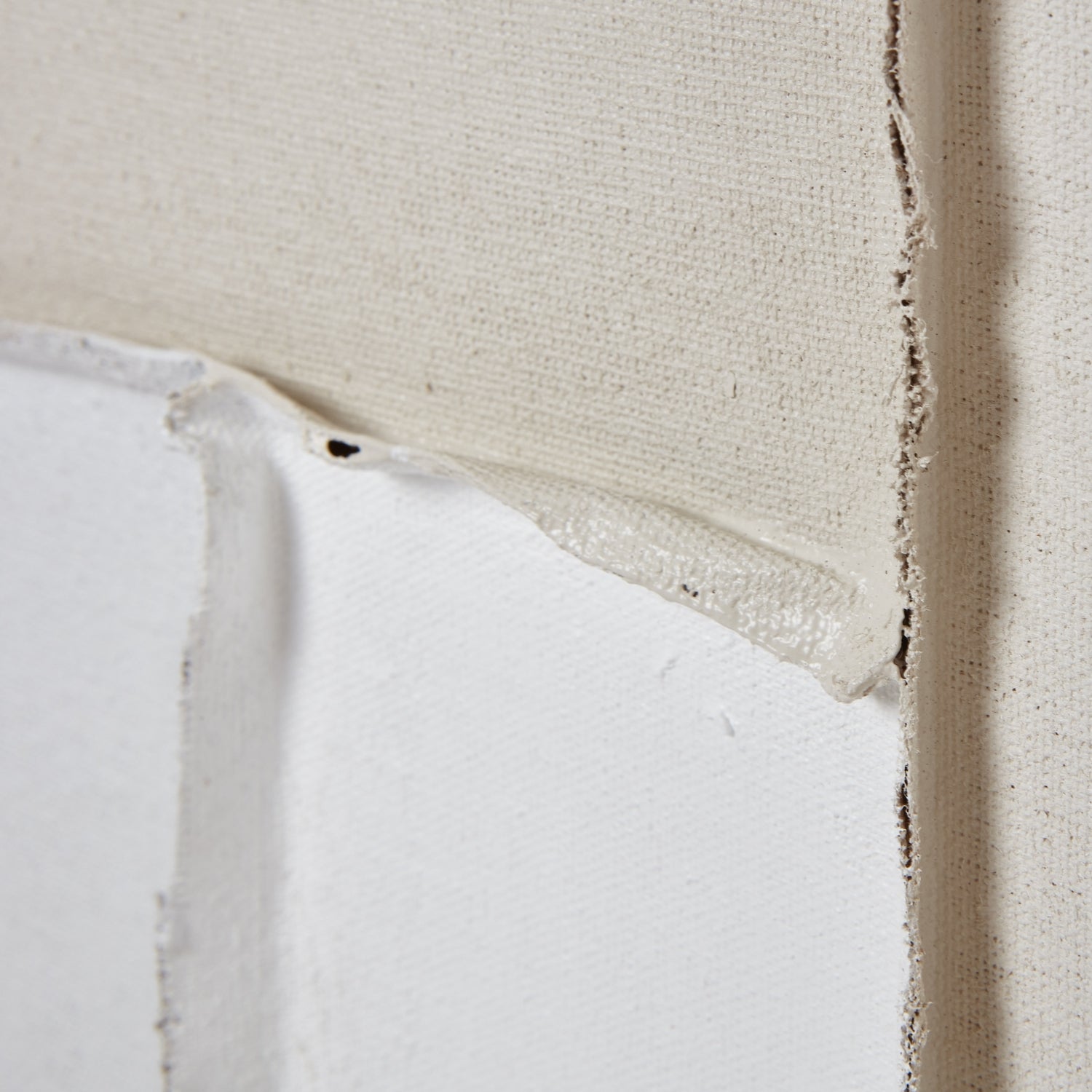 The painting features a carefully curated palette of soft greys, crisp whites, and gentle beige tones that not only adds versatility but also enhances various interior design styles. Its geometric composition is masterfully arranged, offering depth and visual intrigue while maintaining a refined aesthetic.