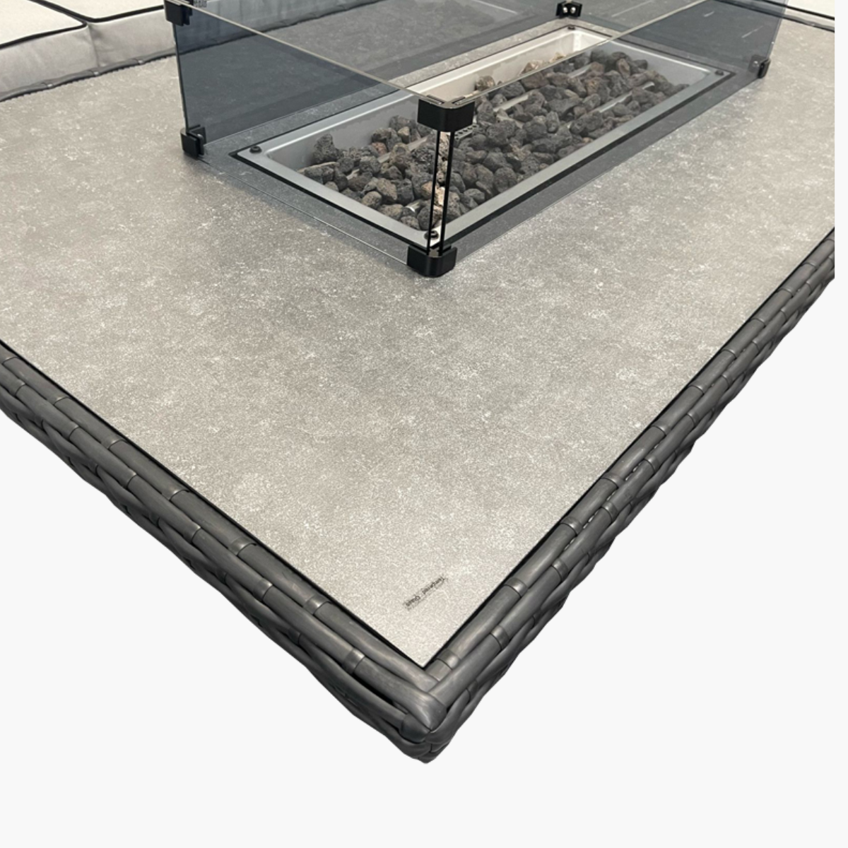 Built-In Fire Pit Table: Large 150 x 90 cm fire pit table with 3KG of decorative fire stones and adjustable flame height – perfect for warmth and atmosphere.