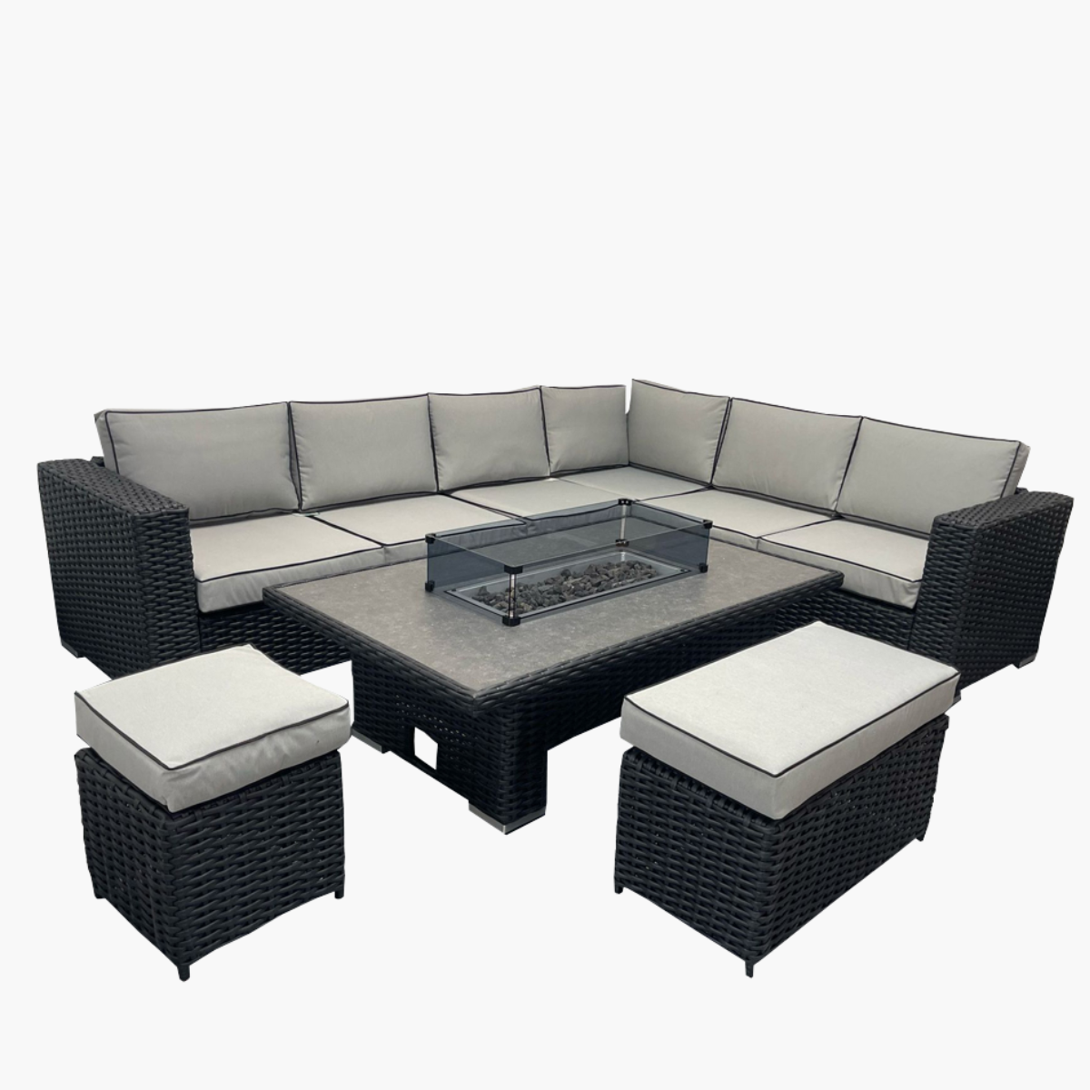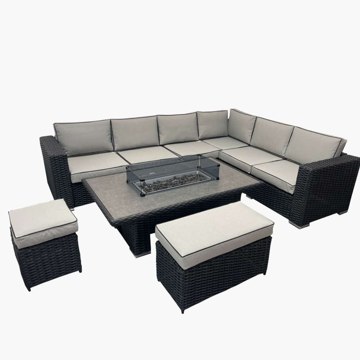 This all-in-one fire pit lounge set is the ultimate upgrade for your garden, patio, deck, or backyard entertainment area. It’s designed to bring people together in style and comfort – day or night.