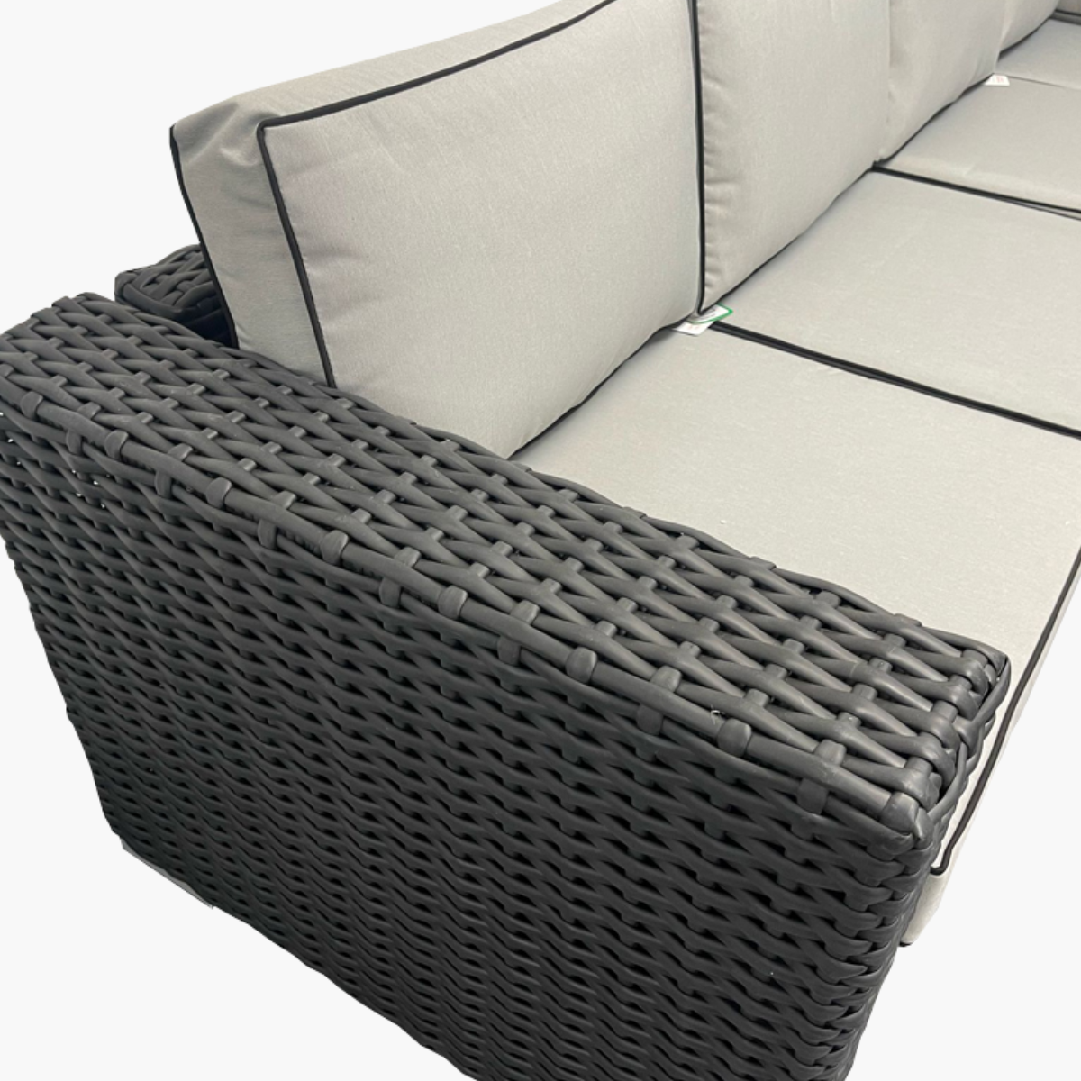 Stylish & Functional Design: Modern dark rattan paired with neutral cushions creates an elegant and cozy outdoor ambiance.