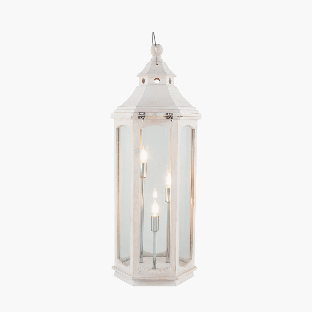 Adaline White Wash Wood Lantern Floor Lamp – Elegant Lighting with Rustic Charm