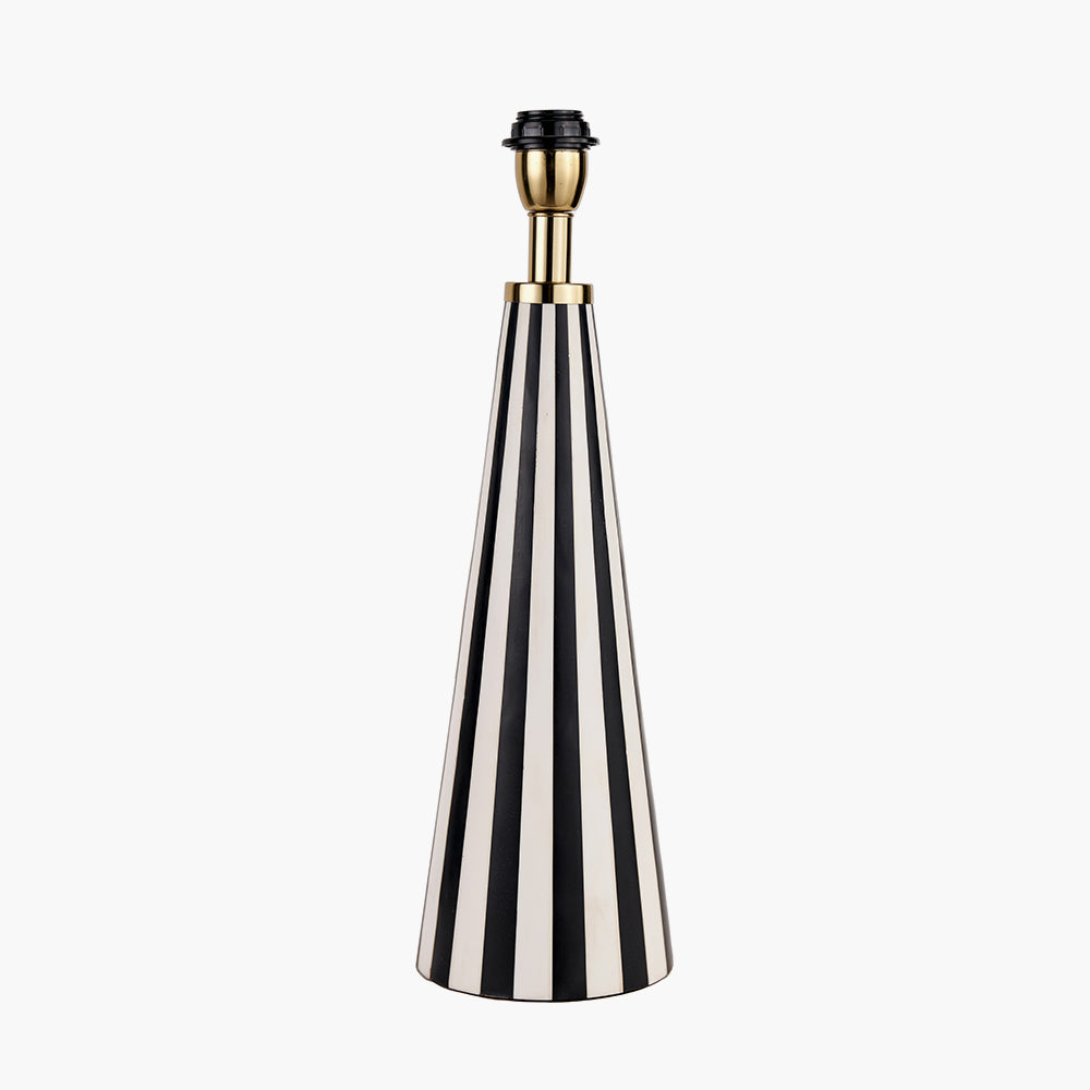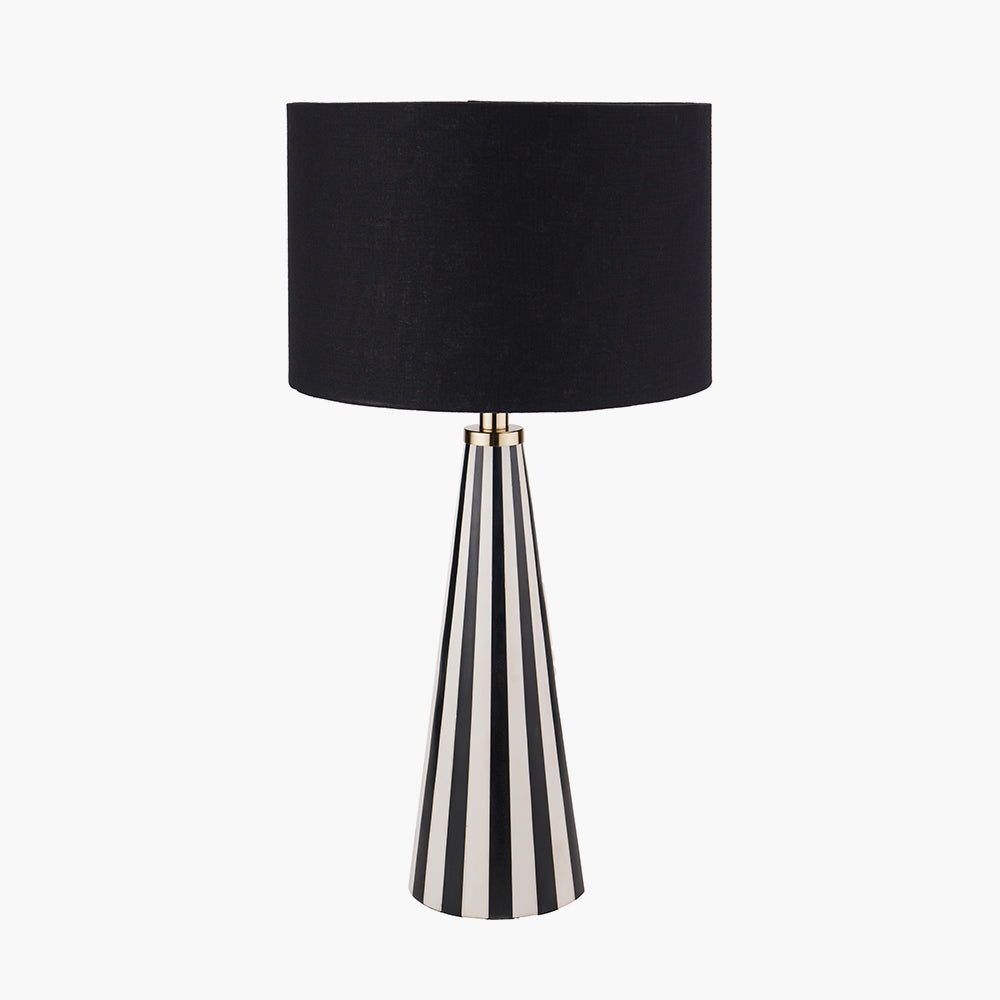 Elegant Alejo Black and White Stripe Conical Resin Table Lamp Base with Harry 35cm Black Cotton Mix Cylinder Lampshade