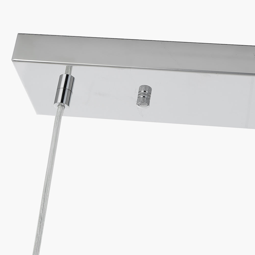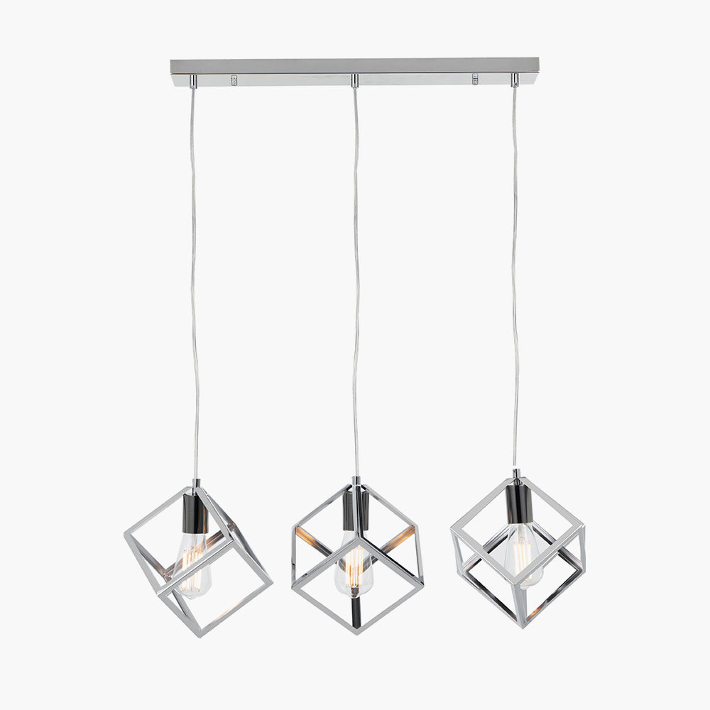 A piece of modern art. When hung our Alessio three drop electrified pendant appears to be suspended in mid-air. Finished in shiny nickel with contrasting black nickel bulb holders, this pendant adds a contemporary, industrial style to your home. Pair with our Calex bulbs to complete the look.