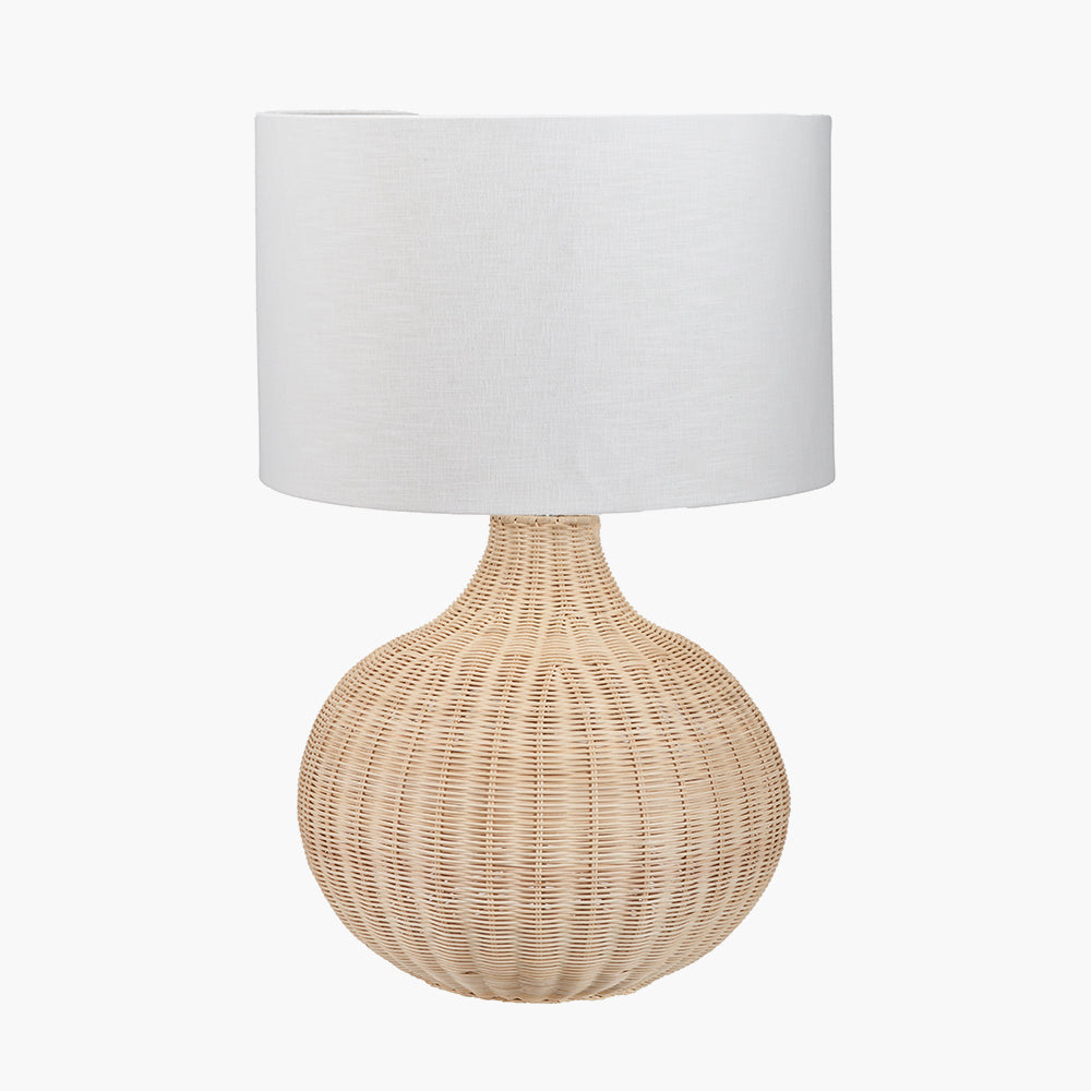 Our exquisite woven rattan table lamp, in a stylish natural rattan, will bring a organic, tactile finish to your home. Its stunning proportions, curved shape, and delicate weave, ensure this table lamp will be the focal point in your room. The lined, white linen lampshade with textured finish completes the table lamp perfectly.