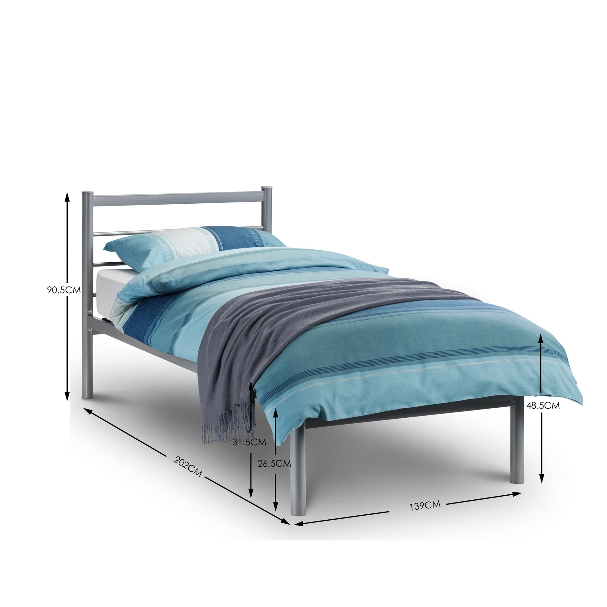 A contemporary double metal bed in a stylish aluminium finish, combining a highly durable construction with a timeless design that complements a wide range of interior styles. A sprung slatted base ensures a comfortable night's sleep and prolonged mattress life.