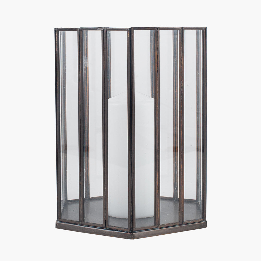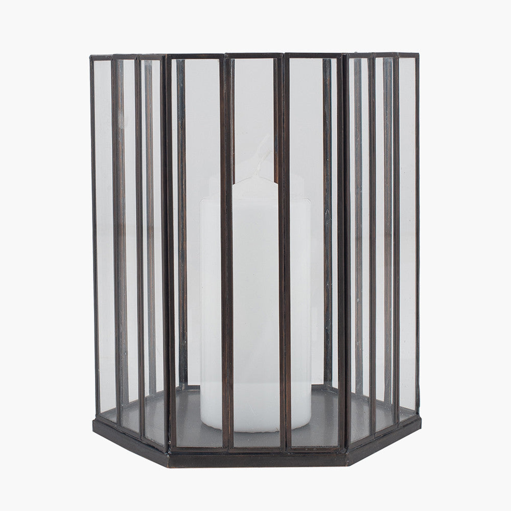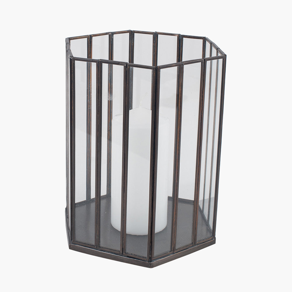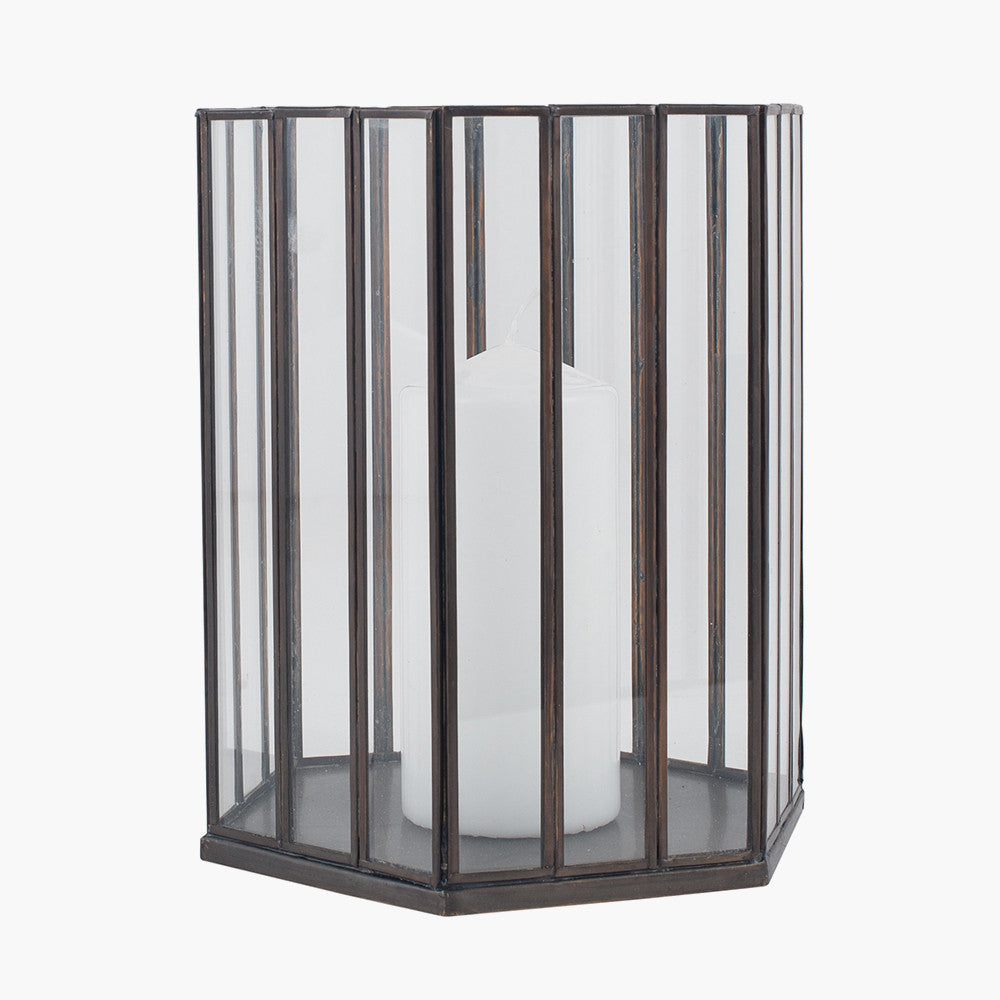 Illuminate Your Space with the Antique Brass Metal and Glass Hexagonal Lantern Small