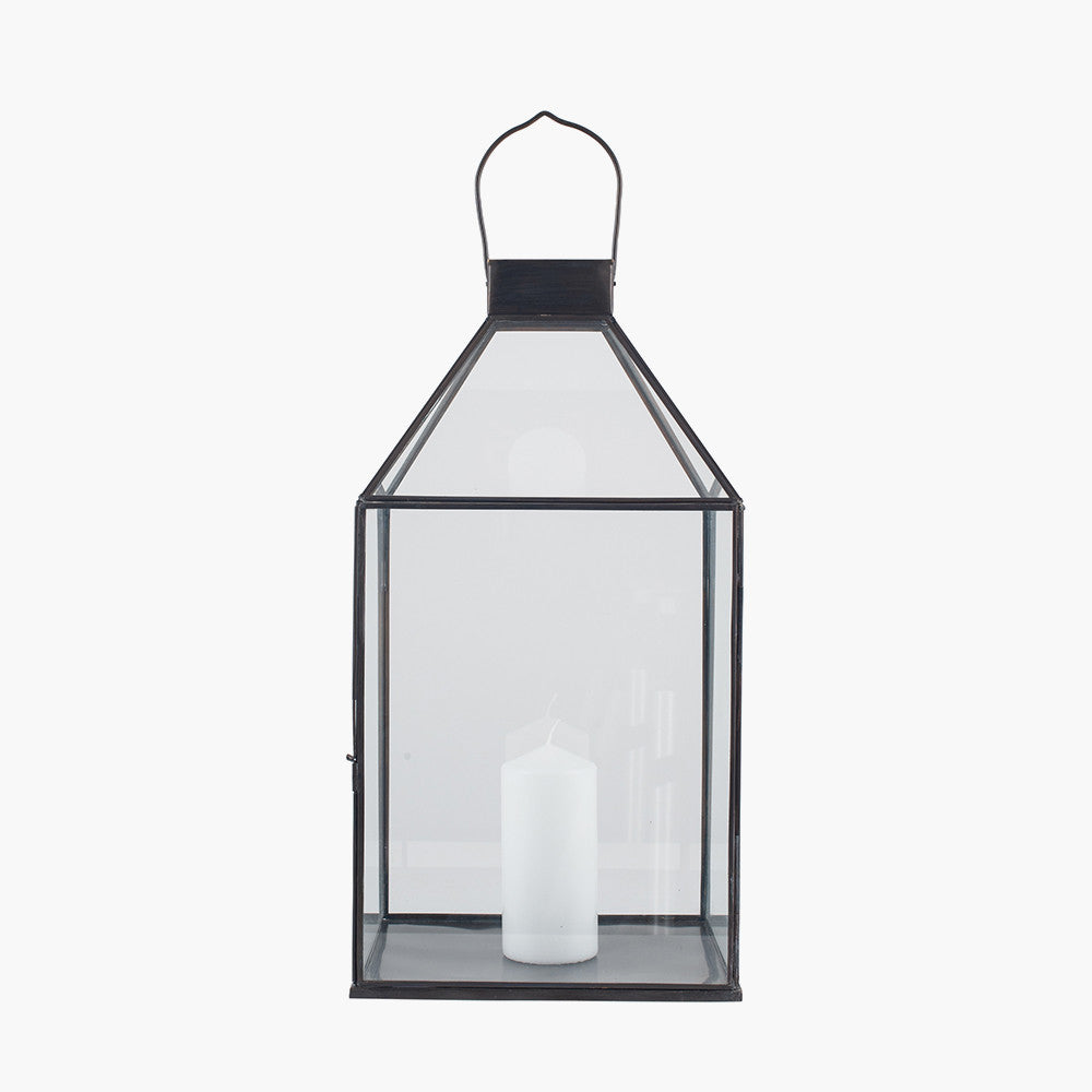 Stay on trend with our black brass metal and clear glass square lantern. From special occasions to cosy evenings in, this lantern will add a welcoming atmospheric cosy glow to your room. Why not couple with our taller and smaller versions or our black brass options to complete the look.