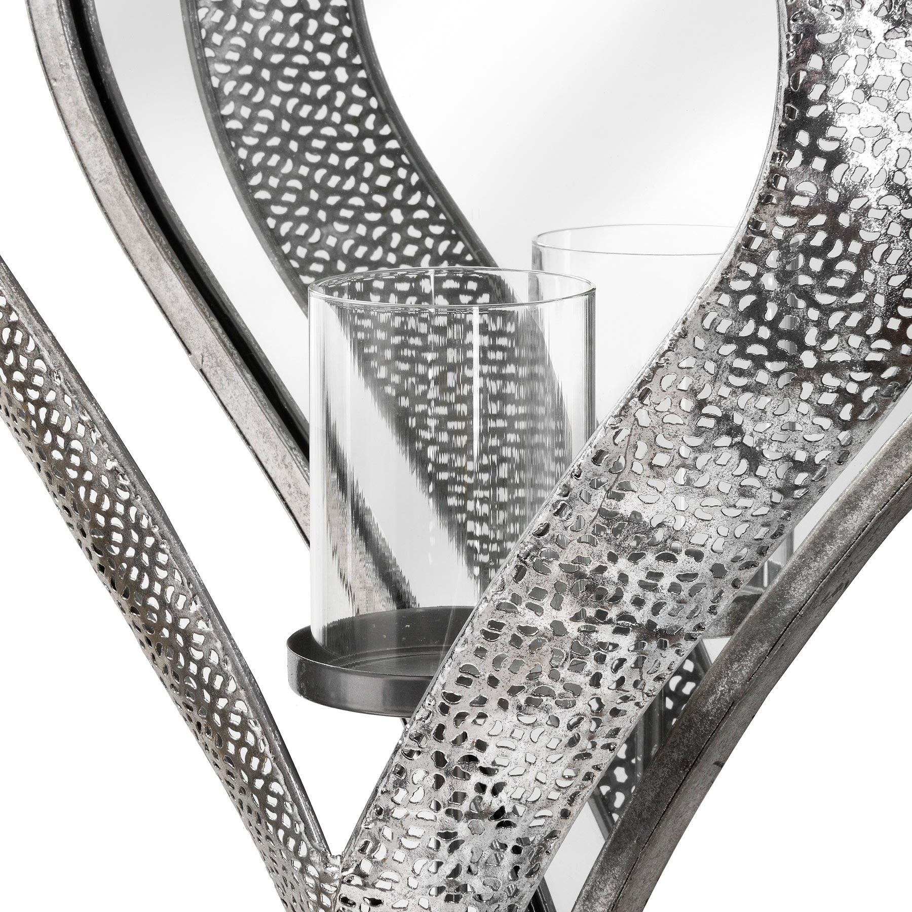 Antique Silver Heart Mirrored Tealight Holder in Large