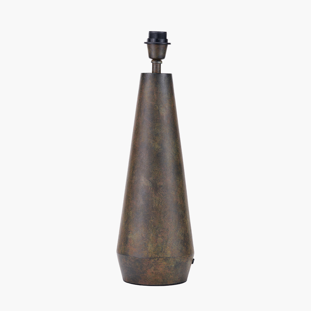 Our incredibly stylish verdi gris coloured metal table lamp is sure to make a statement with its contemporary conical shape. The well-proportioned metal table lamp base, lovingly crafted in India, looks fantastic with a tapered or cylinder shade.