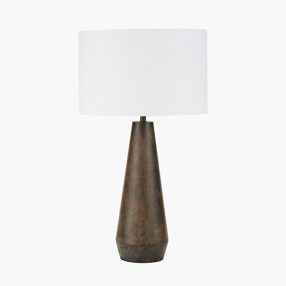 Our incredibly stylish verdi gris coloured metal table lamp is sure to make a statement with its contemporary conical shape. The well-proportioned metal table lamp base, lovingly crafted in India, looks fantastic with the white, self-lined linen lampshade to complete the look.