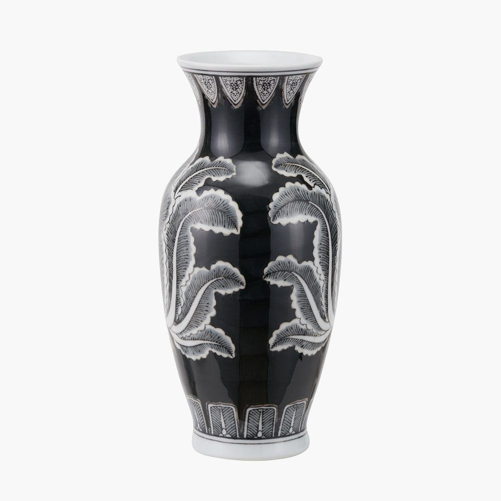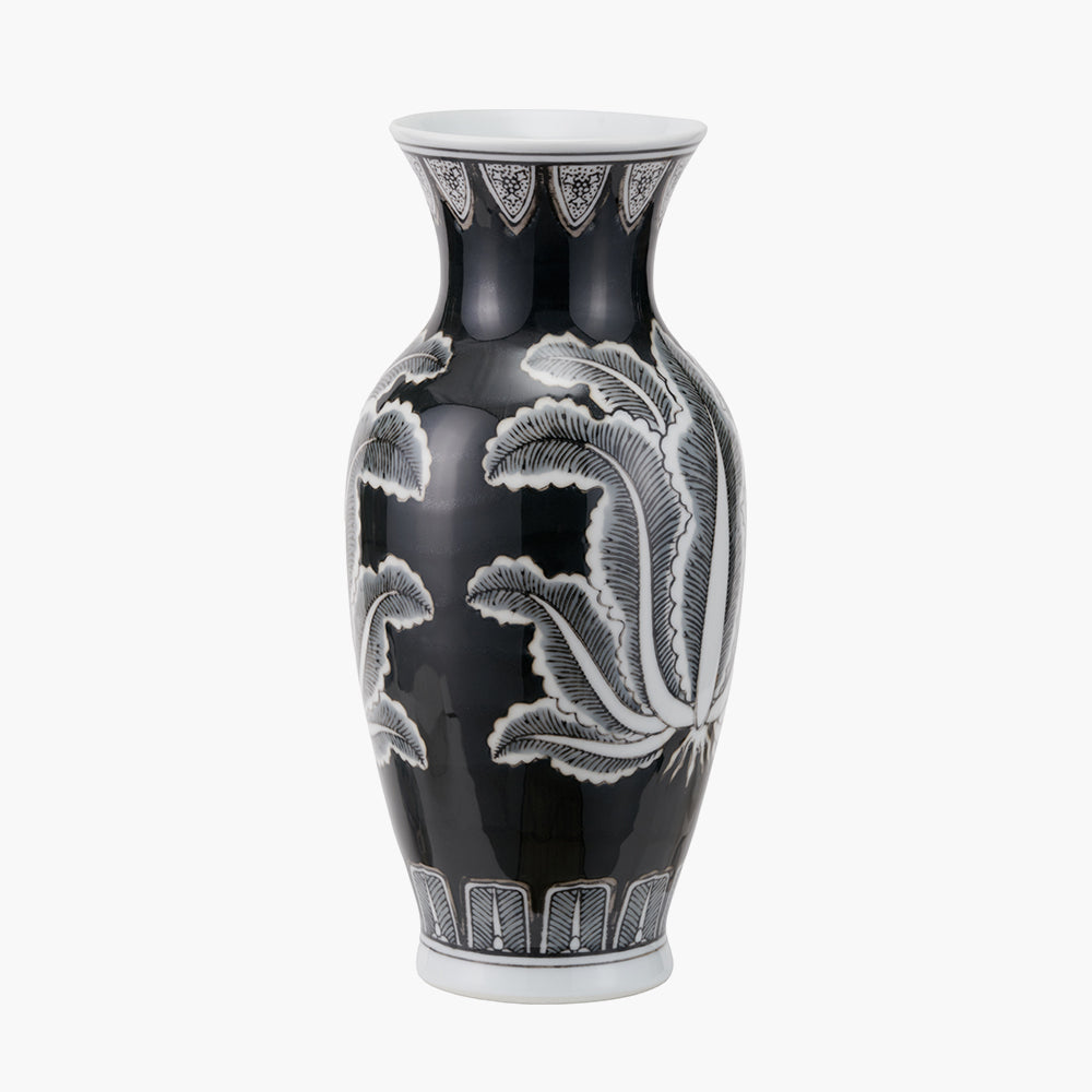 Our Asteria Black and White Feather Ceramic Urn Vase elevates any space with its stunning monochrome feather design. Crafted from ceramic, this beautifully shaped, well-proportioned piece adds a touch of elegance to any room. Perfect as a stand-alone piece or adorned with fresh or dried flowers, this luxurious vase exudes style.