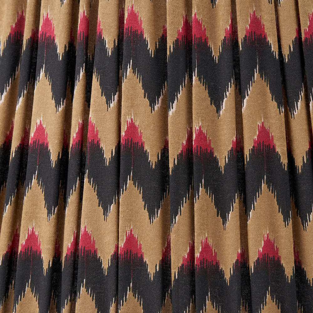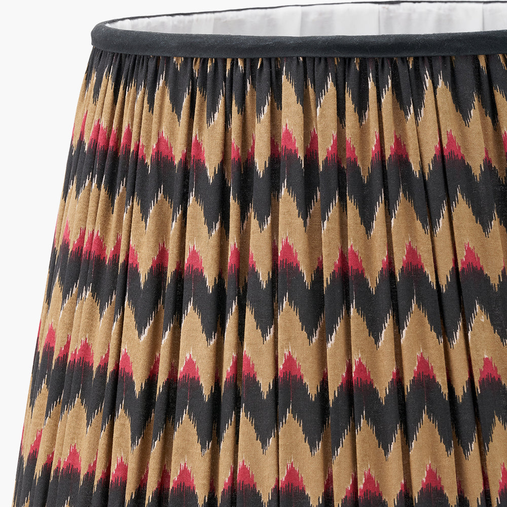 The Athira 40cm cotton mushroom pleat, tapered lampshade is decorated with an eye catching multi-coloured chevron pattern, adding a playful pop of colour and pattern to any space. Its vibrant design works beautifully with a variety of lamp bases. This lampshade features a reversible gimbal, allowing it to be used with either a table or floor lamp base, or reversed for use as a ceiling pendant.