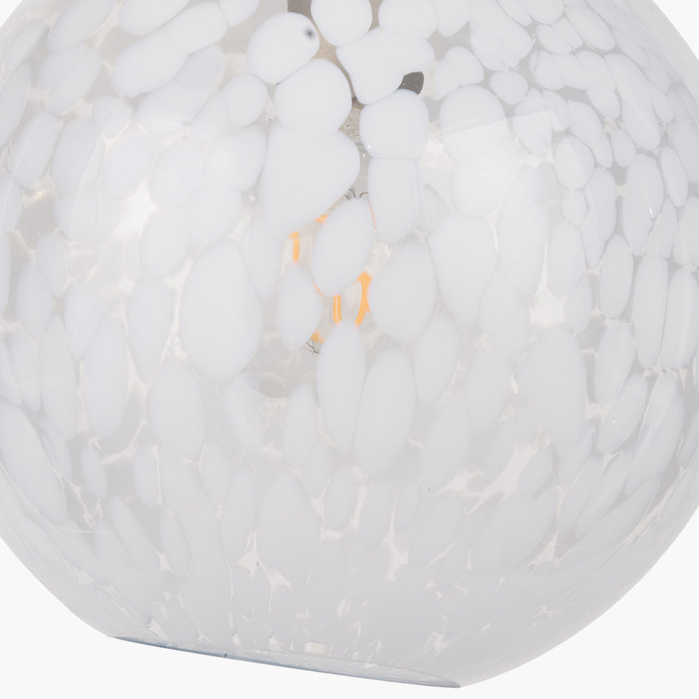Introducing our luxurious Speckled White Glass Spherical Pendant light. With its clean white subtle speckled effect, this pendant adds a touch of sophistication to any modern interior. Its soft glow will illuminate your space, making it a beautiful addition to any room.