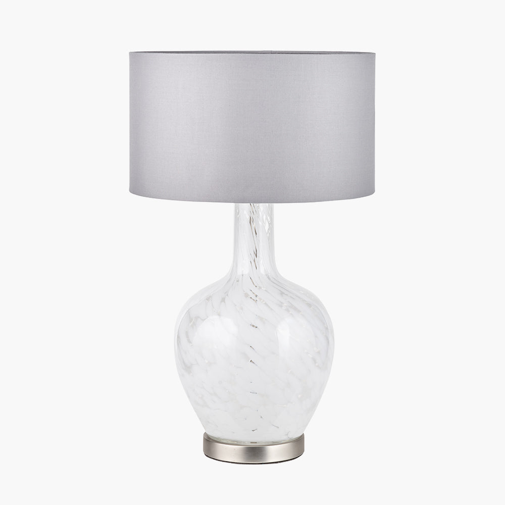 Transform your home with the gentle illumination and stylish appeal of the Aurora Speckled White Glass Table Lamp. Order yours today and elevate your interior design!
