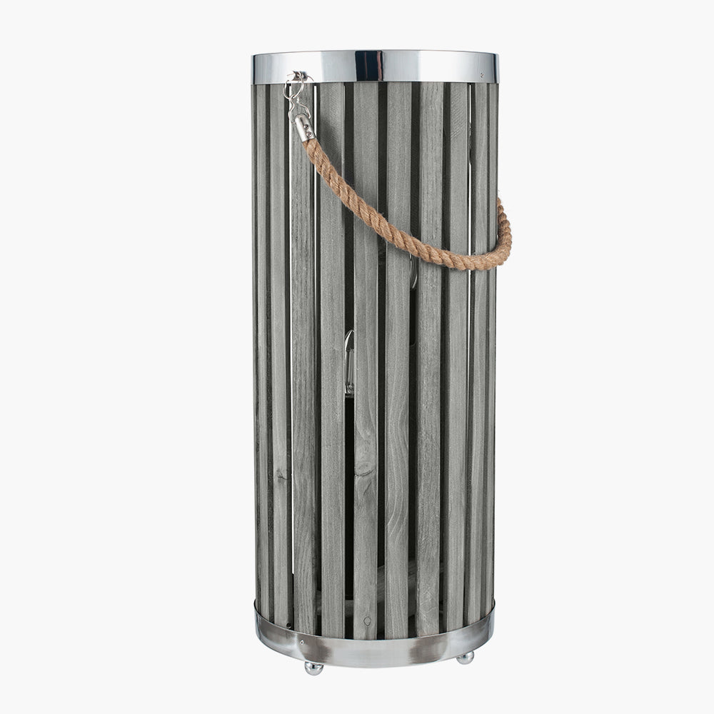 Bring some soft coastal styling into your home with our grey wash wood slatted table lamp. The slatted design diffuses the light in an elegant manner, emanating a homely feel and would look stunning in any interior space. Also available as a small table lamp.