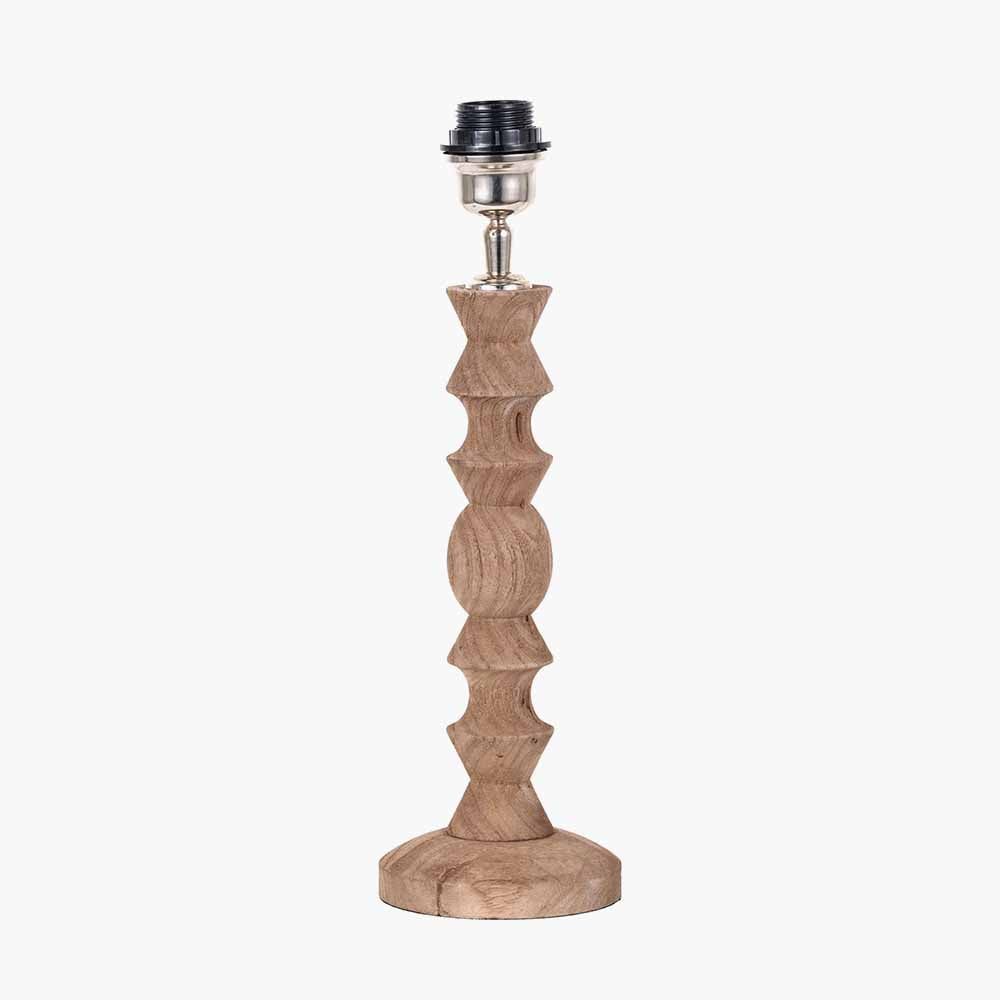 Add rustic elegance to your space with this tall, handcrafted Indian table lamp made from mango wood. Featuring a refined turned wood design and a natural wash finish, it offers a modern, clean-lined aesthetic that complements neutral interiors beautifully. Pair it with one of our slubby linen or cotton shades for a sophisticated, timeless look.