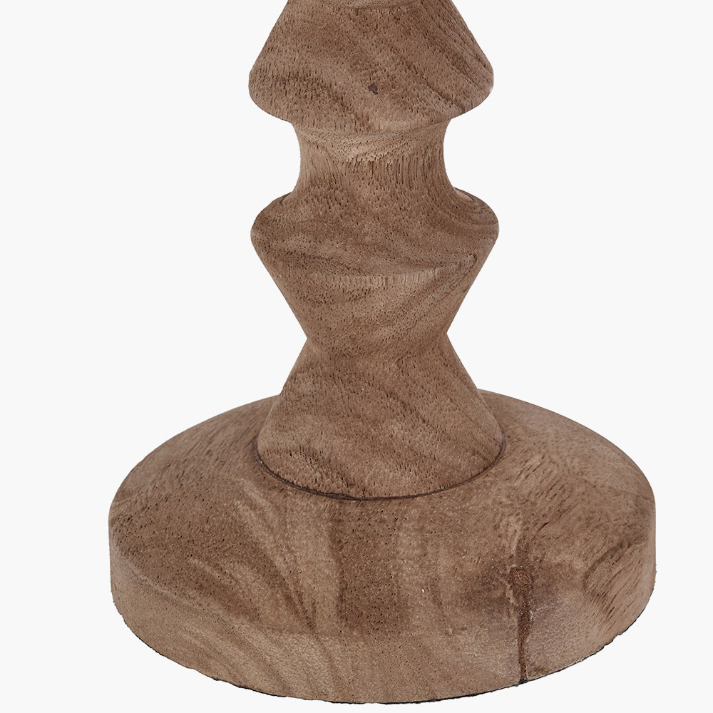 Add rustic elegance to your space with this tall, handcrafted Indian table lamp made from mango wood. Featuring a refined turned wood design and a natural wash finish, it offers a modern, clean-lined aesthetic that complements neutral interiors beautifully. Paired with a luxurious heavyweight openweave white cotton cylinder lamp to complete the look.