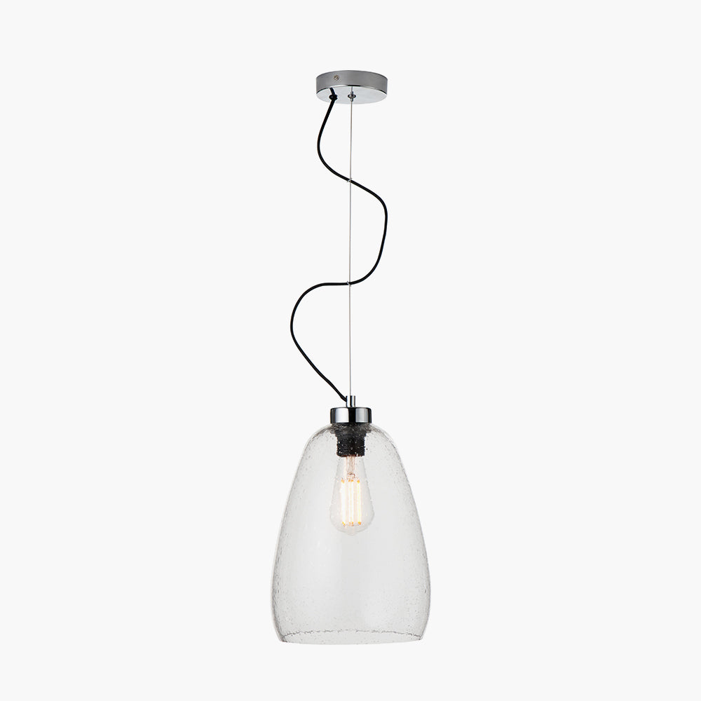 This tall, clear bubble glass pendant has a beautifully organic cloche shape. The clear bubble effect mean it will fit perfectly into any interior style, adding stylish depth and texture to any room.