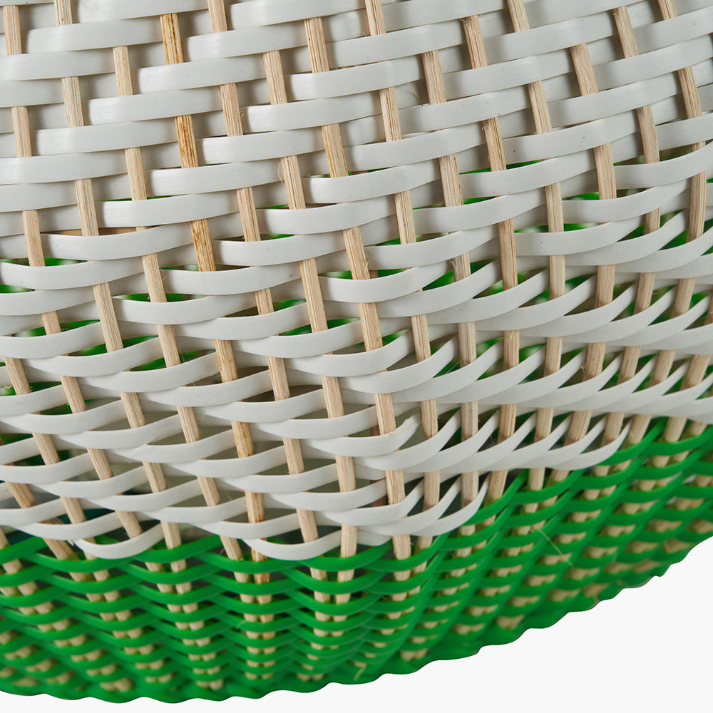 Handcrafted from exquisite woven and synthetic rattan, this lamp showcases a stylish natural finish highlighted by vivid tones of green and crisp white. Its impressive proportions, coupled with a graceful curved shape, ensure that it will be the centerpiece of your decor.