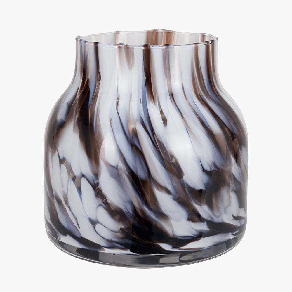 This beautiful Tortoiseshell Short Glass Vase is made from a high quality glass with a striking black/brown and white swirl throughout. The design is inherent in the glass and makes a contemporary vessel for your floral display.