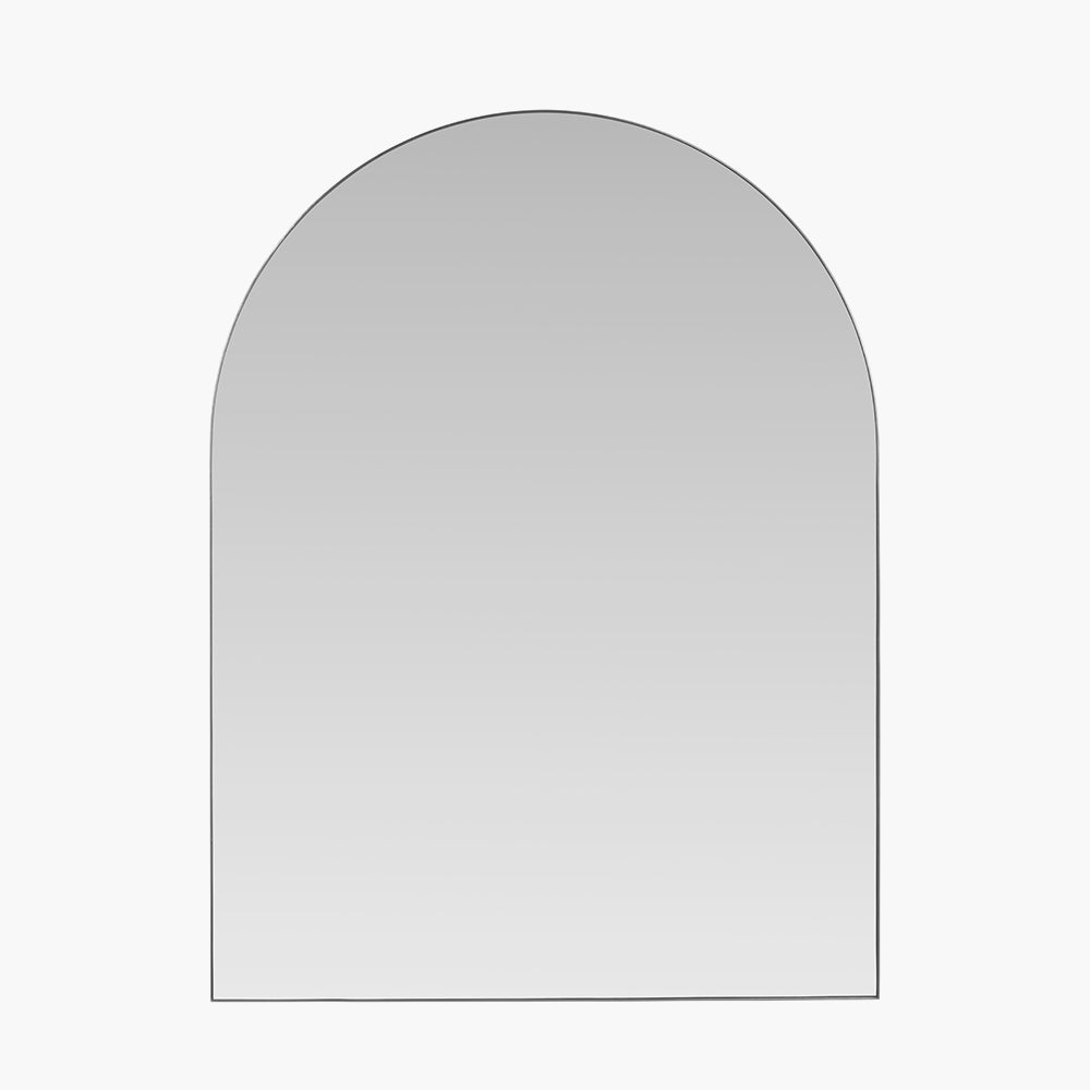 This elegant silver tall arch mirror is the perfect addition to an industrial or minimalist décor and ideal for rooms with high ceilings. The slim metal frame is finished in a soft brushed silver perfect for adding a spacious feel and brightness to your space. Not suitable for bathroom use.