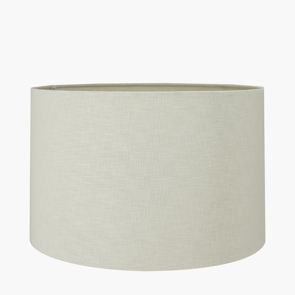 This stoneware table lamp base from the Philippines is finished with a hand embossed effect stripe in a contrasting blue on white background. This lamp creates a fresh look to a home by the sea or a room with a coastal effect theme. The table lamp base is topped off perfectly with a open weave vanilla linen cylinder lamp shade, completing the coastal look.