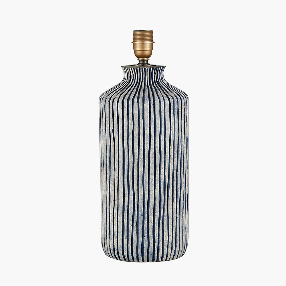 Crafted from high-quality stoneware, the lamp base features a unique hand-embossed stripe design in a vibrant blue against a pristine white backdrop. This striking contrast adds a refreshing aesthetic that complements both modern and traditional interiors.