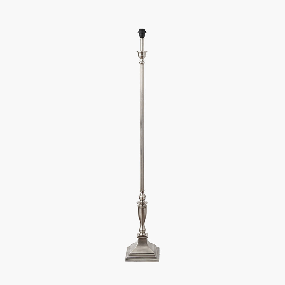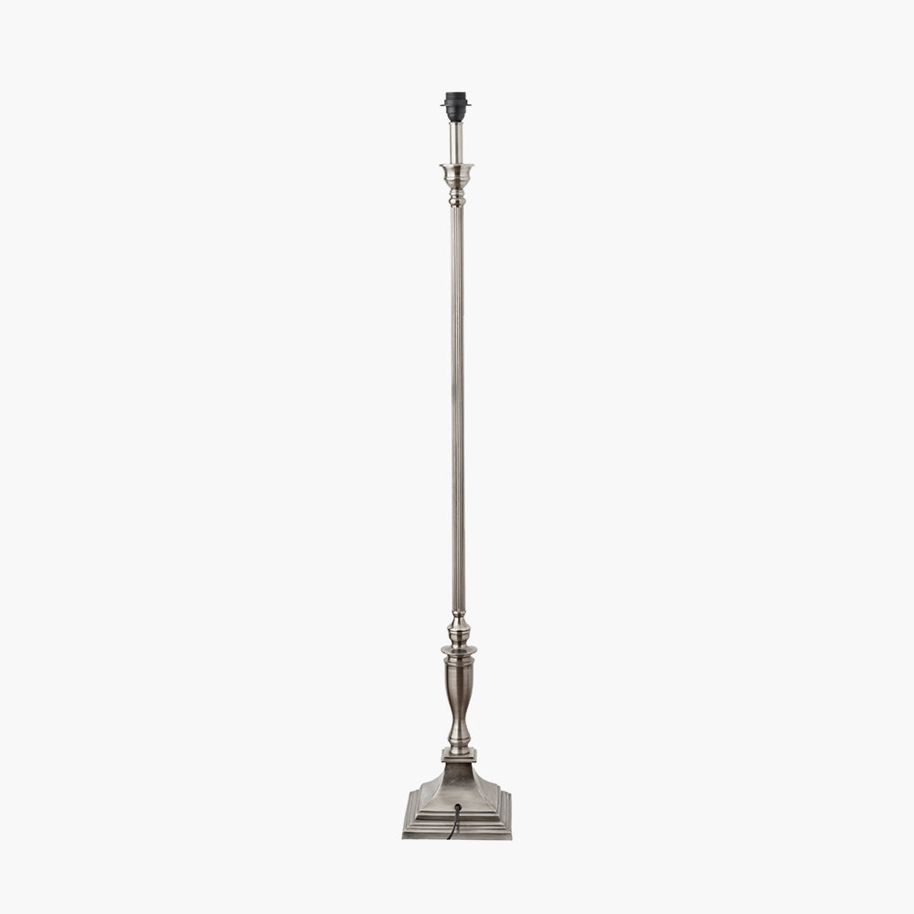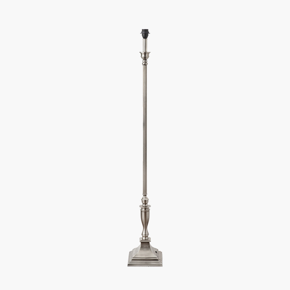 Traditionally styled, this antique silver lamp base with ribbed detail on the column, will add a hint of colonial to your look. Style with either a cylinder or a tapered shade from our range. Also available in a table lamp Recommended lampshade size: 45cm diameter