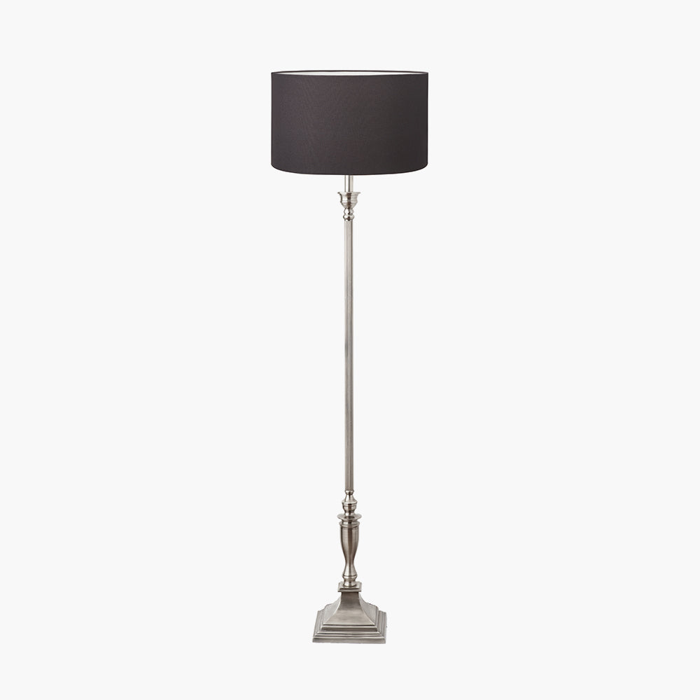 Transform your home decor with the Canterbury Antique Silver Metal Floor Lamp Base paired with the exquisite Henry 45cm Grey Handloom Cylinder Lampshade. This stunning lamp is designed to enhance any room with its timeless elegance and sophistication.