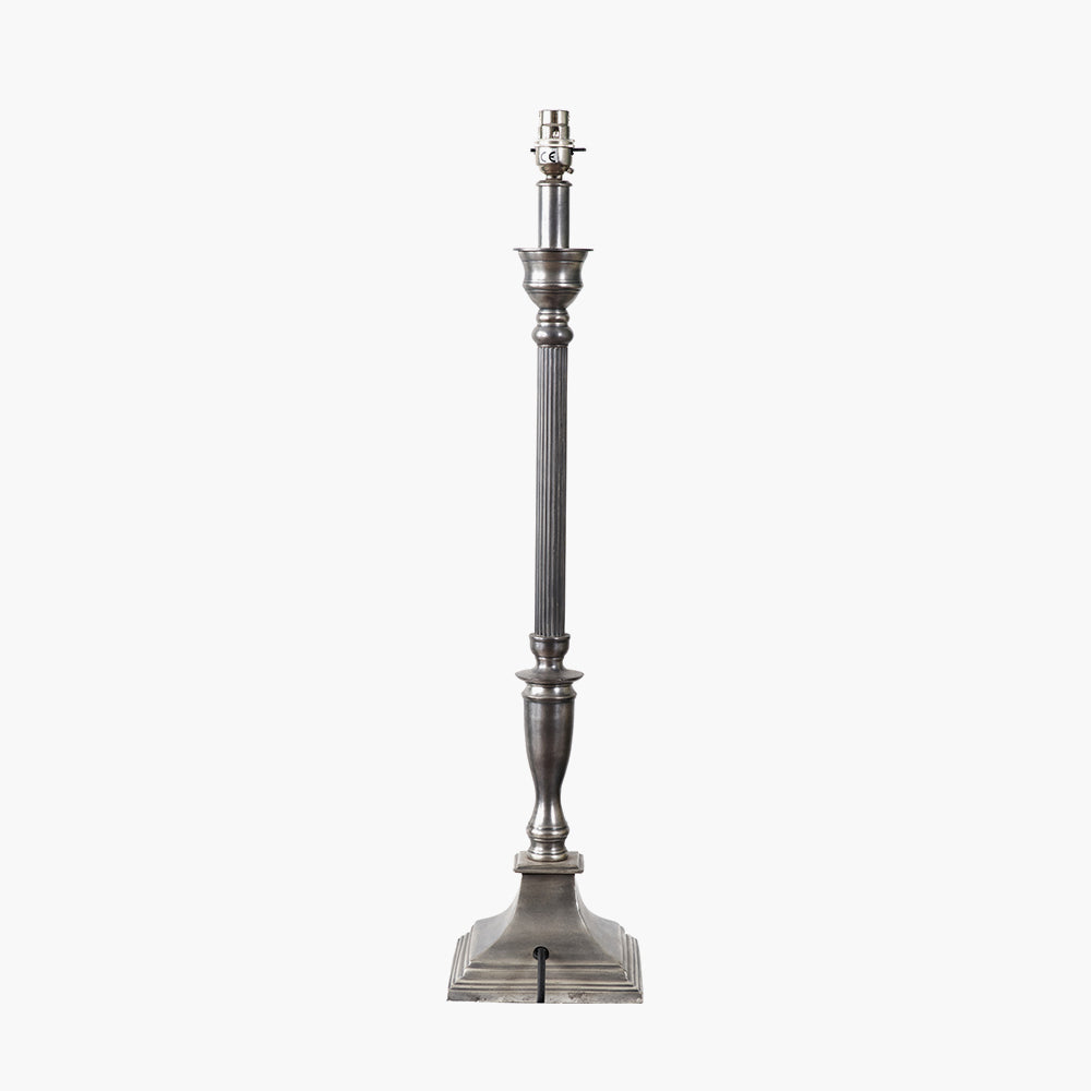 Canterbury Antique Silver Metal Table Lamp Base brings traditional styling with a hint of colonial charm to your space. The antique silver finish highlights ribbed detailing along the column, creating a refined silhouette that pairs beautifully with complementary shades. Use this base with a cylinder or tapered shade from our range to complete the look.