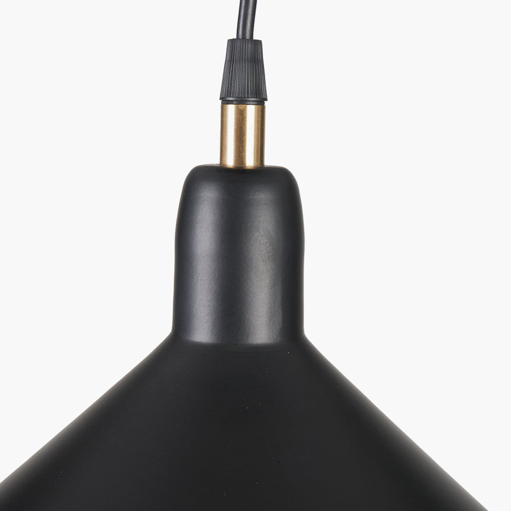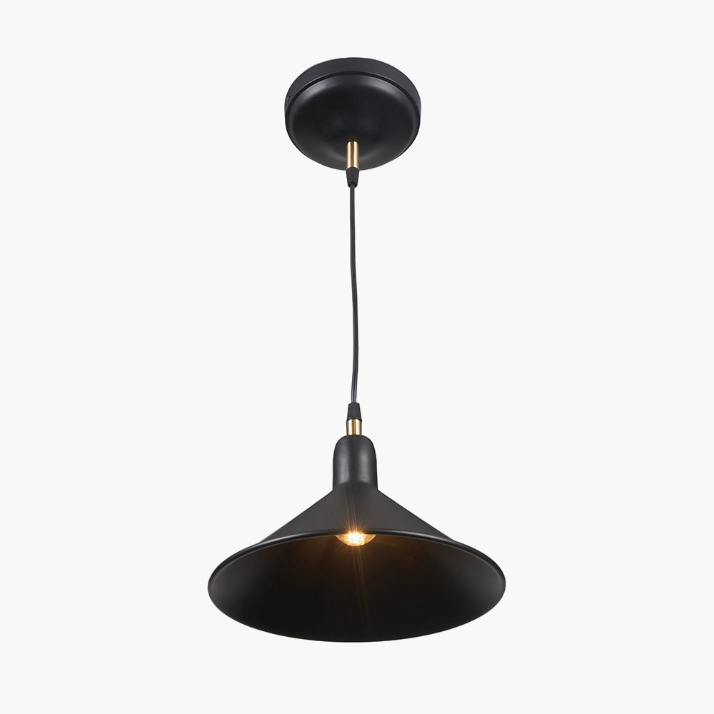 A beautifully stylish, contemporary electrified pendant. With a black metal cone shade and black and brass coloured detailing; this is the perfect industrial style pendant. Hang alone or in multiples, either way it is just as striking.