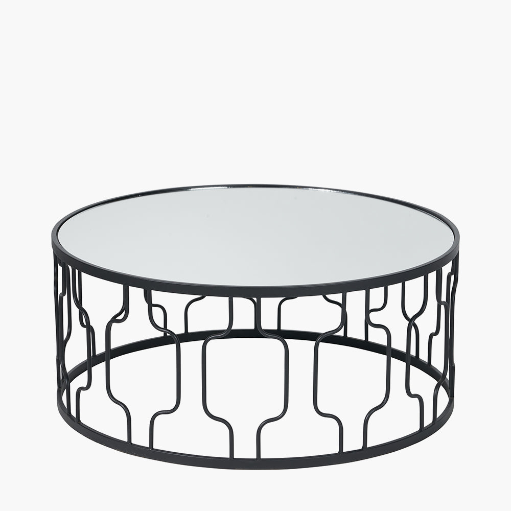 Featuring a sleek black metal frame, the Caprisse coffee table is not only durable but also adds a sophisticated edge to any living space. The striking mirrored glass top reflects light beautifully, creating an inviting atmosphere in your home.