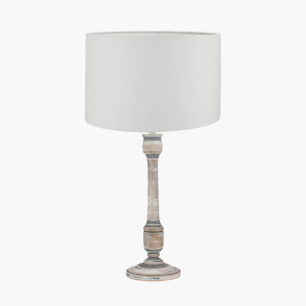 Add a touch of rustic charm to your space with the Captiva Mango Wood Table Lamp Base, handcrafted in India. The base features elegant, turned wood styling and a soft grey wash finish that brings warmth and texture to any room.