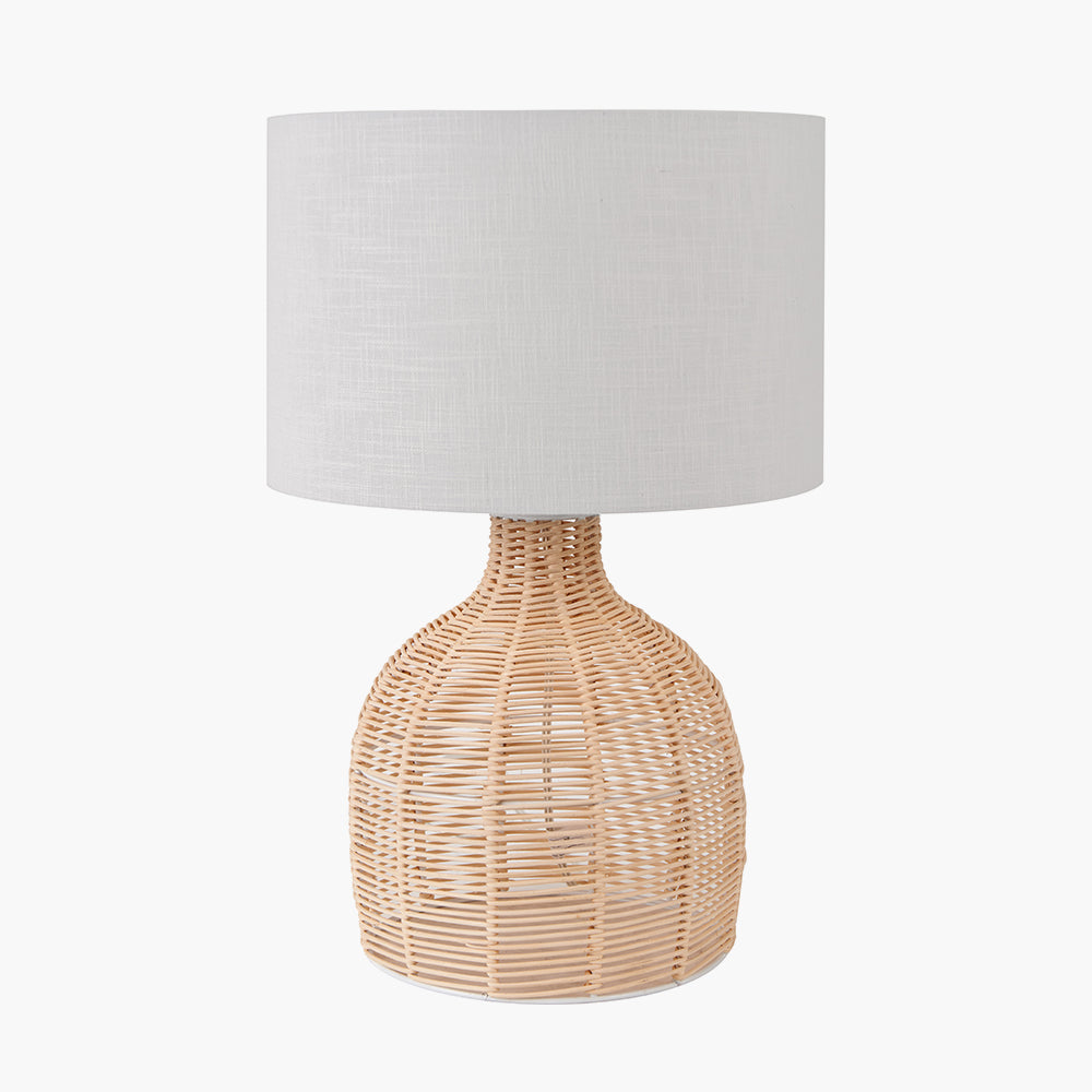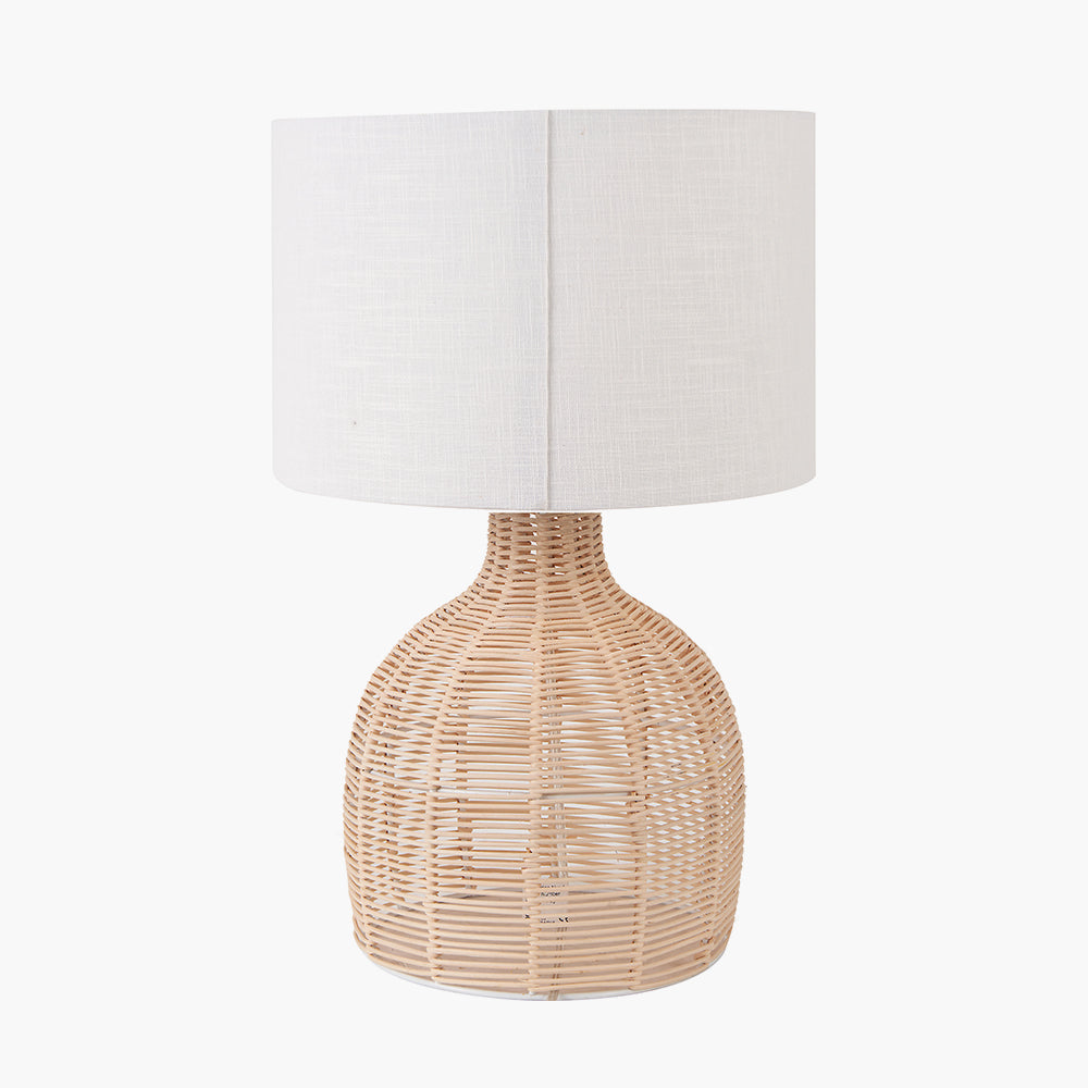 Transform your living area with the Caswell Natural Rattan Cloche Table Lamp, a stunning blend of elegance and natural charm. Handwoven from premium slim gauge natural rattan, this exquisite lamp features a captivating cloche shape that enhances any room's ambiance.