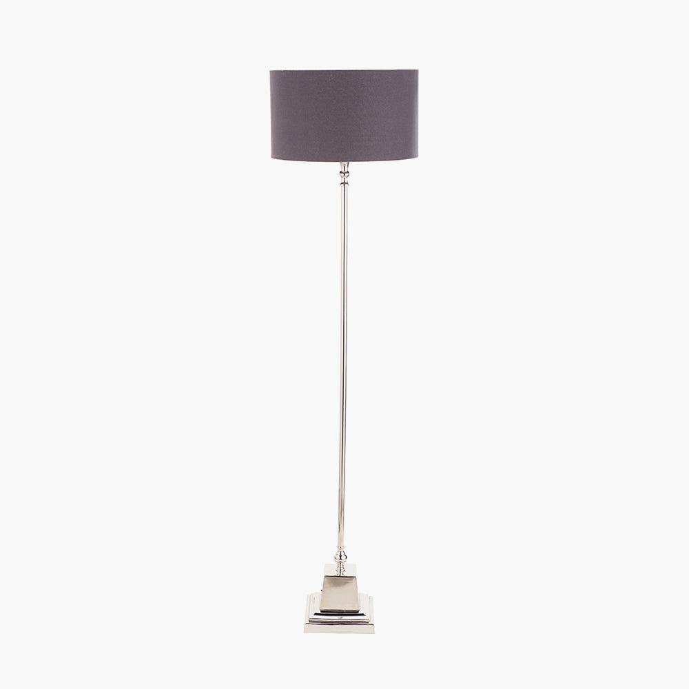 Illuminate Your Space with the Claudius Nickel Metal Stick Floor Lamp Base and Henry 40cm Grey Handloom Cylinder Lampshade