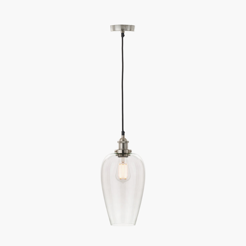 Illuminate Your Space with the Clio Antique Silver Metal and Clear Glass Pendant