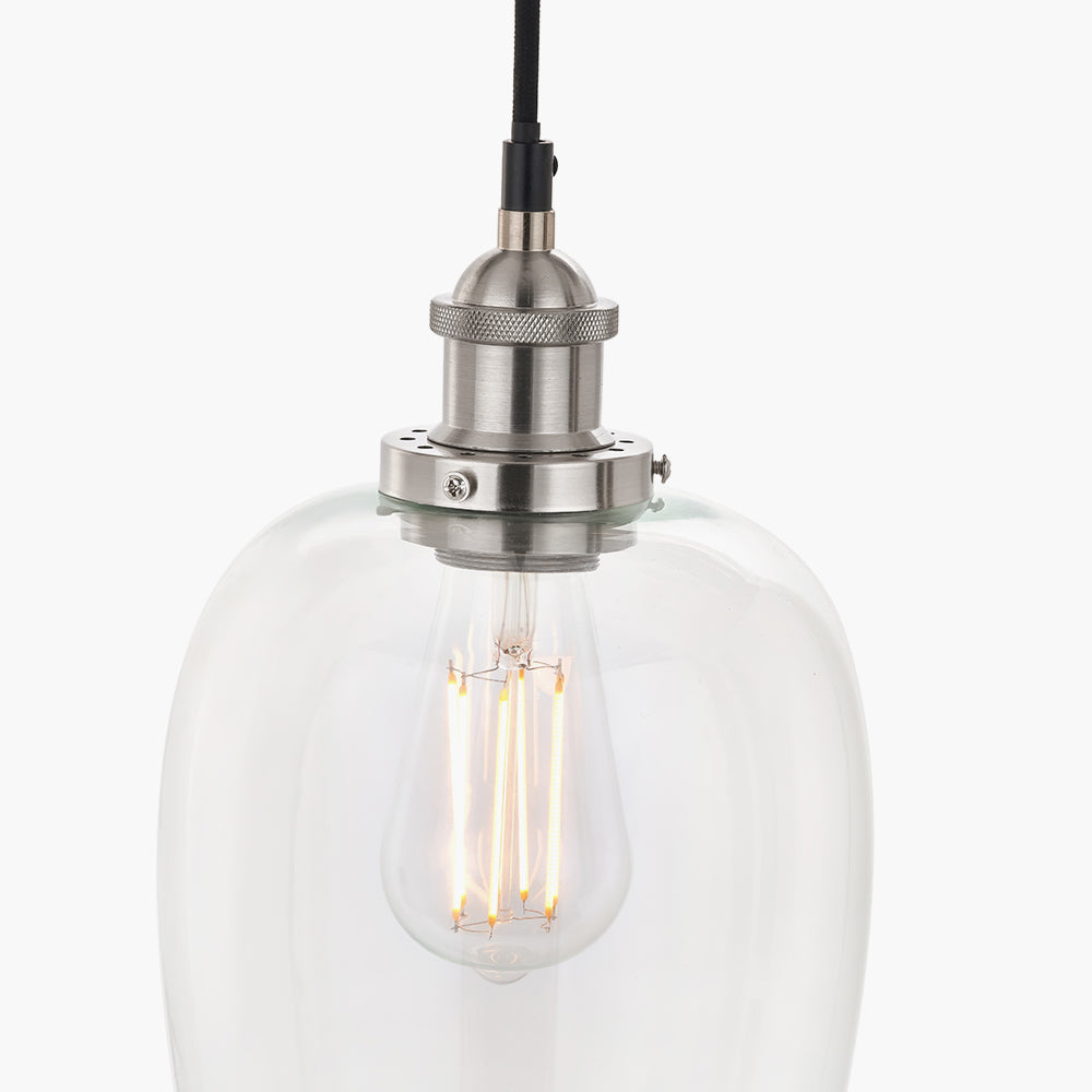 - Timeless Design: The radiant clear glass shade showcases a minimalist silhouette, elegantly suspended from a durable black fabric cable.