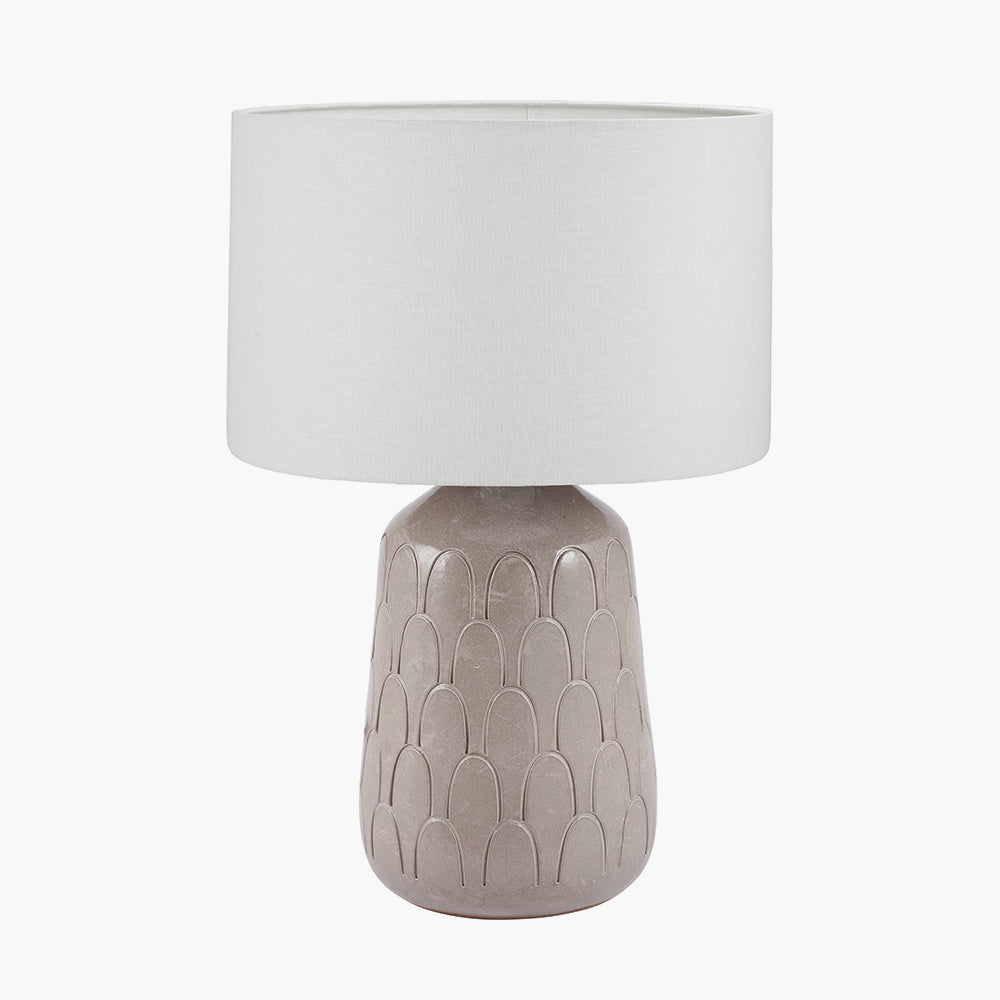 Coco Grey Gloss Arch Design Stoneware Table Lamp Base with Lino 35cm Grey Self Lined Linen Cylinder Lampshade