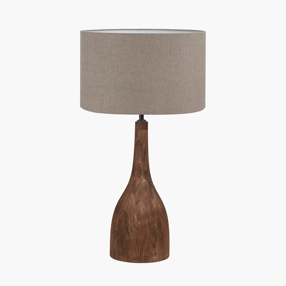 Made in India, this refined Mango Wood table lamp base features a stylish Chocolate Brown finish and is complementary to a Scandi-inspired space. Its tall, curved structure not only serves as an optimal lighting solution but also delivers a contemporary statement with its sleek design. The table lamp base is teamed with a beautifully rustic, open weave jute linen cylinder shade in a natural hue.