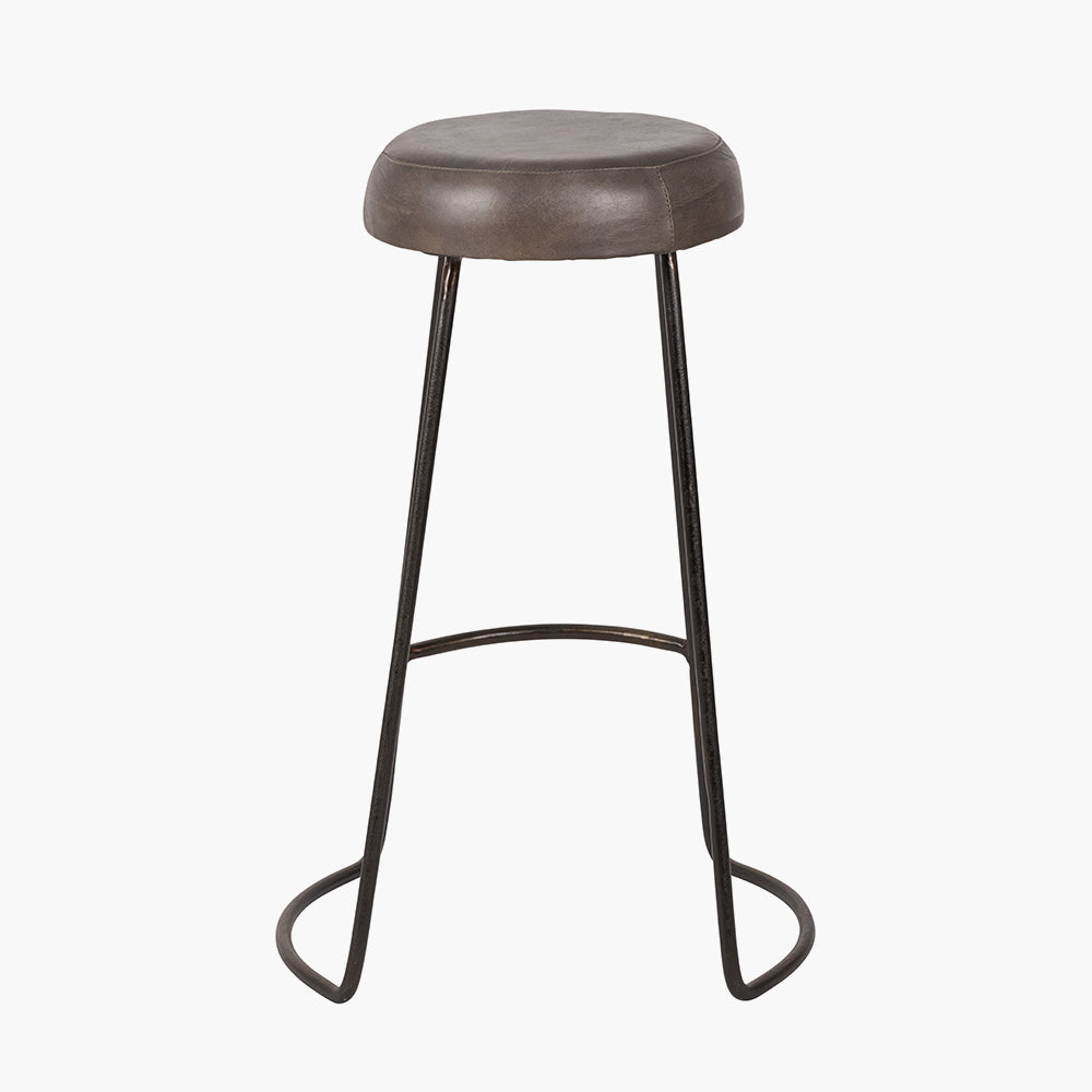 Featuring a luxurious leather seat in a sophisticated peppercorn hue, this stool not only provides a chic aesthetic but also ensures maximum comfort for extended seating. The robust bronze metal legs add a touch of elegance while offering unparalleled stability and support.