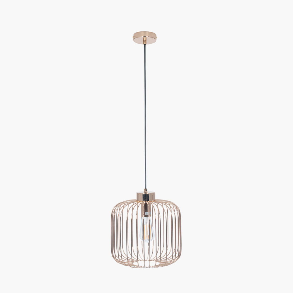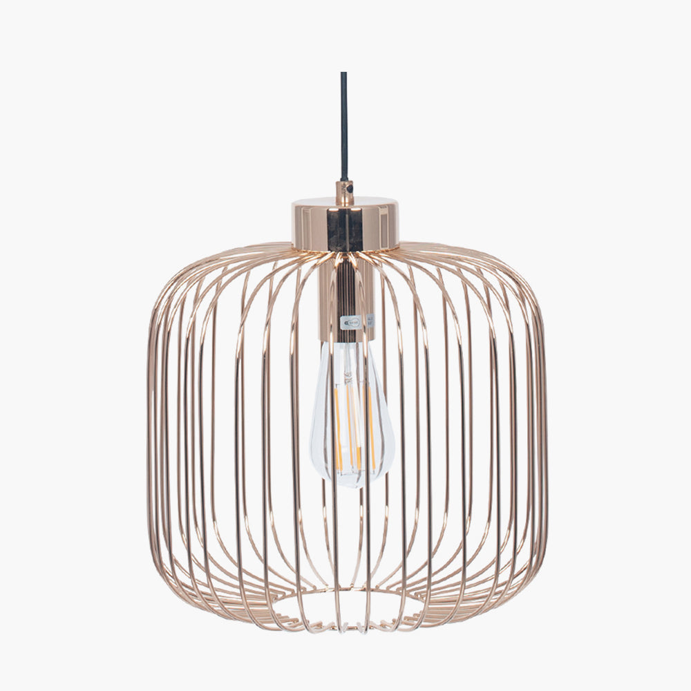Finished in luxurious French Gold, this metal wire pendant is contemporary in design. With the exposed bulb it is wise to use one of our Calex LED filament bulbs to complete the look. Also available in a tall size.