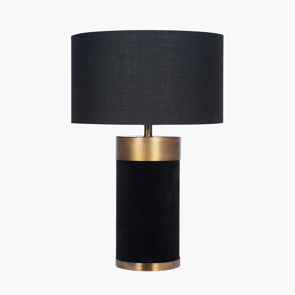 Dempsey Black Velvet and Antique Gold Metal Table Lamp Base with Harry 30cm Black Cotton Mix Cylinder Lampshade