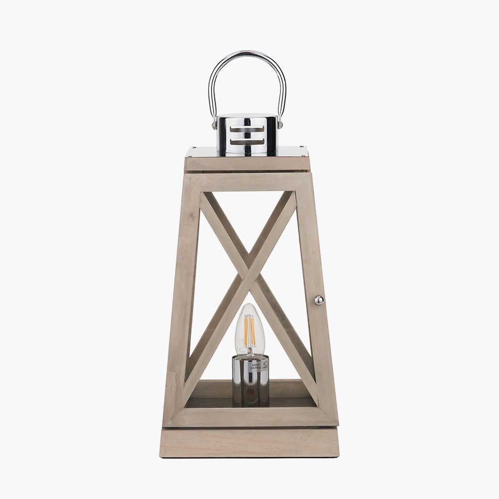 The perfect finishing touch to a coastal interior this grey wood lantern is crafted from wood and features a rustic finish. The tapered square shape maximises the light output. Also available in a whitewash finish.
