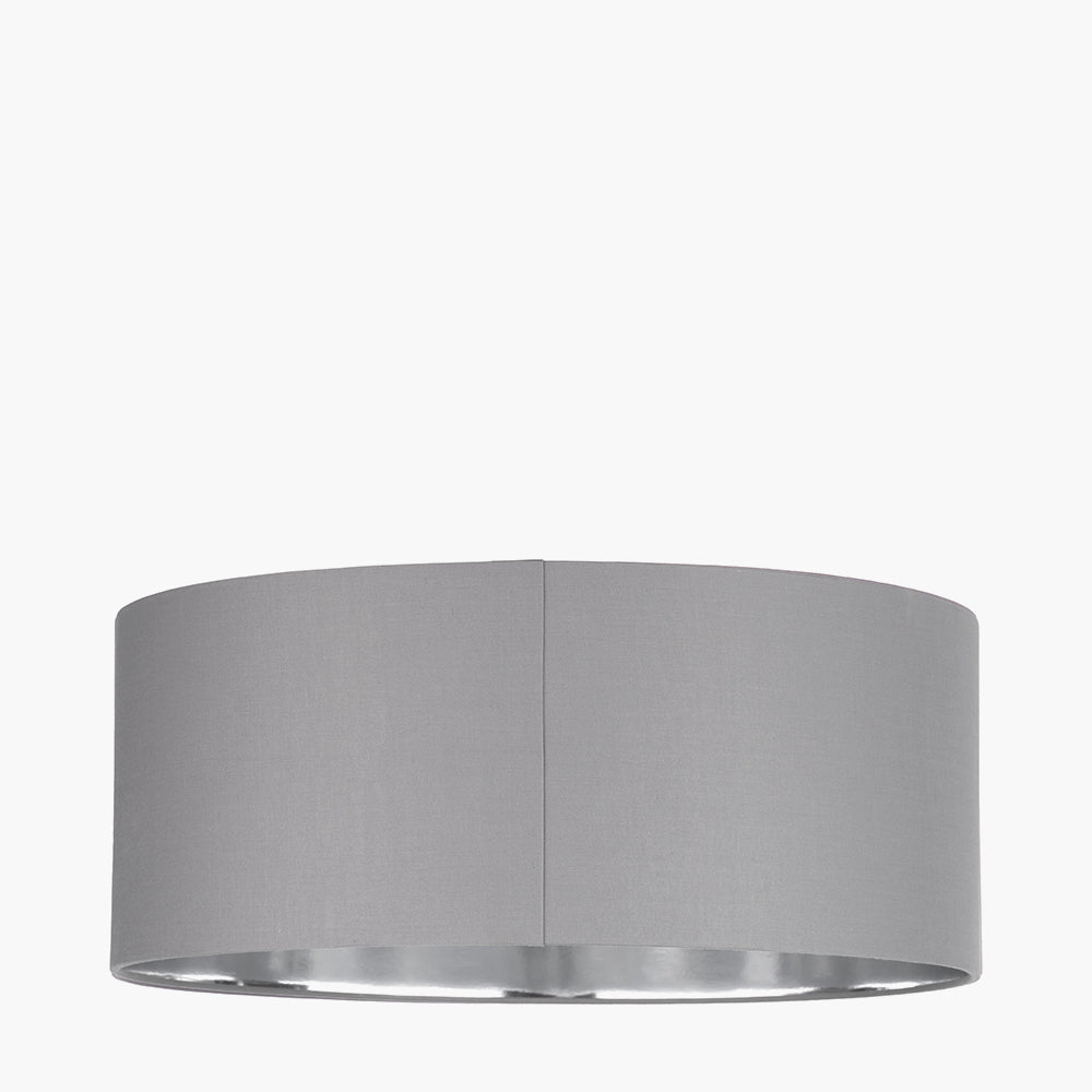 Elin 55cm Steel Grey Poly Cotton and Silver Lining Cylinder Shade