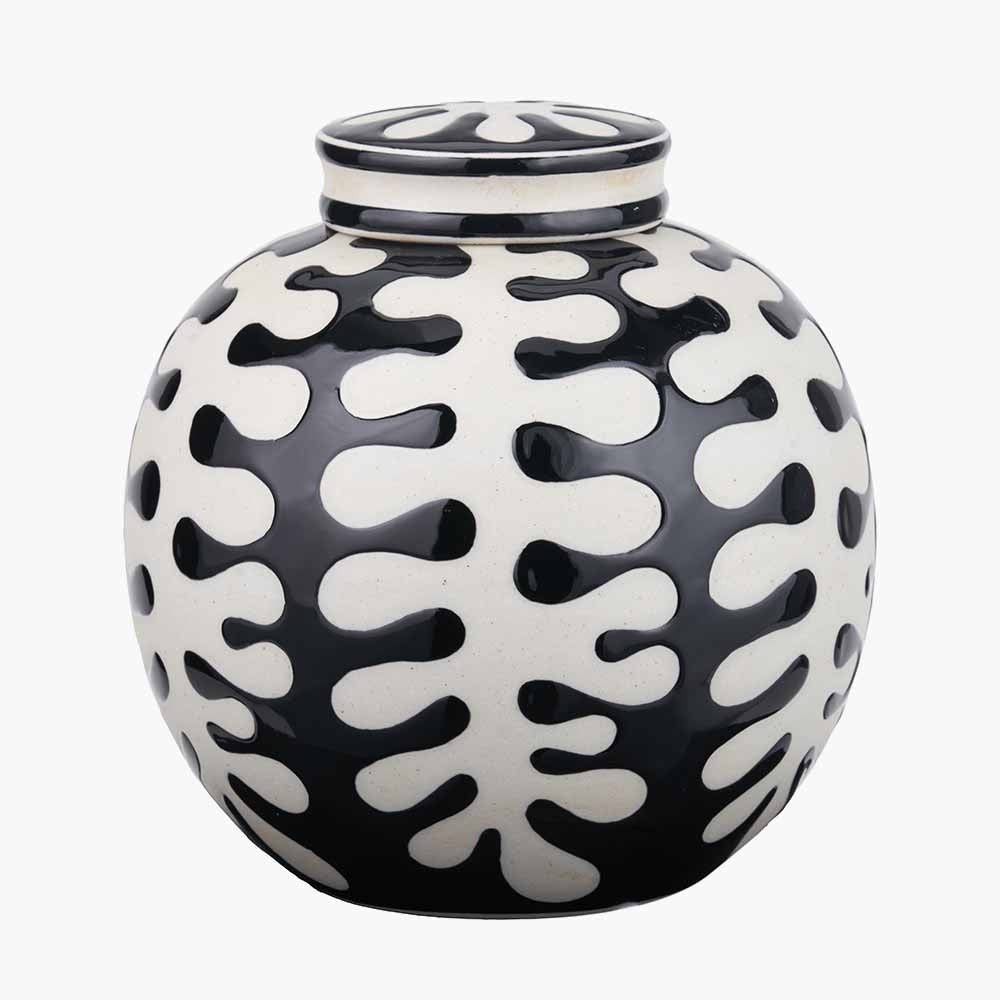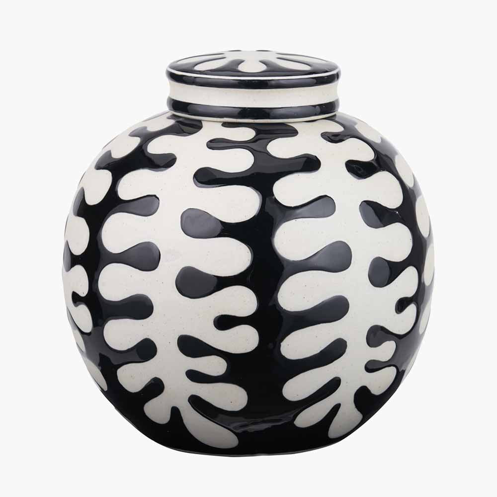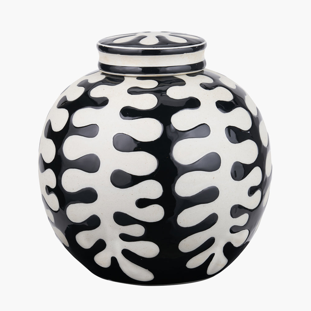 Meet the Elkorn Black and White Ceramic Coral Design Lidded Ginger Jar—a statement piece that blends sculptural form with timeless color. Its perfectly proportioned sphere shape and coral motif are rendered in a contemporary monochrome palette, making it a versatile accent for a range of interiors. The included lid provides discreet storage while preserving the jar’s clean silhouette.