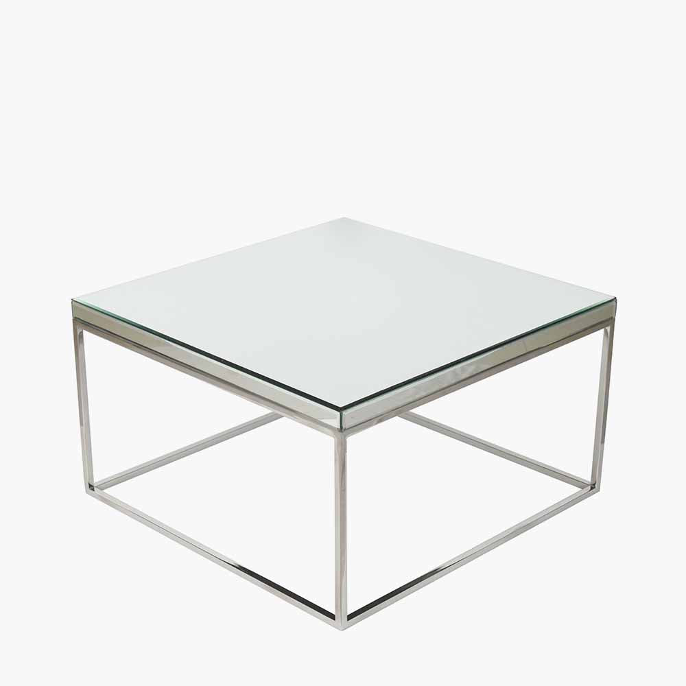 Elysee Mirrored Glass and Silver Metal Square Coffee Table