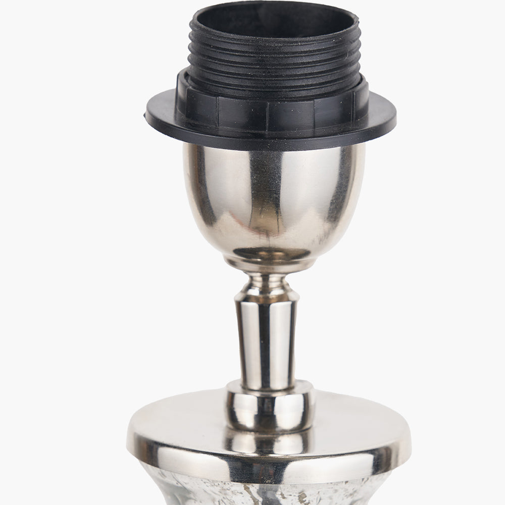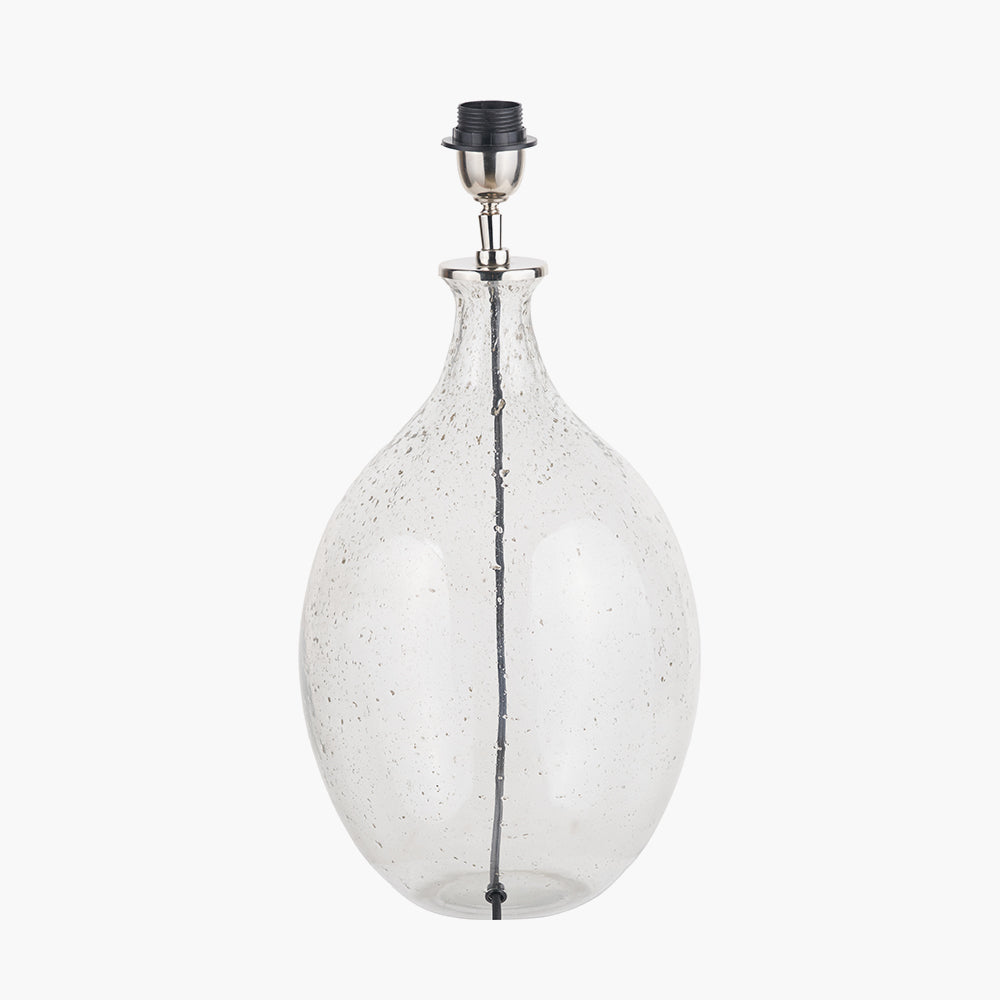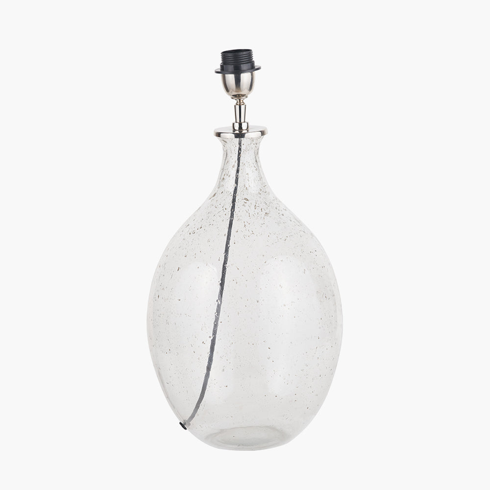 Transform your living space with the Elysia Bubble Glass and Silver Metal Curved Table Lamp Base, an exquisite blend of modern design and timeless elegance. This stunning lamp base, crafted in India, features a beautifully curved shape made from clear bubble glass, providing a unique visual appeal that complements any interior style.