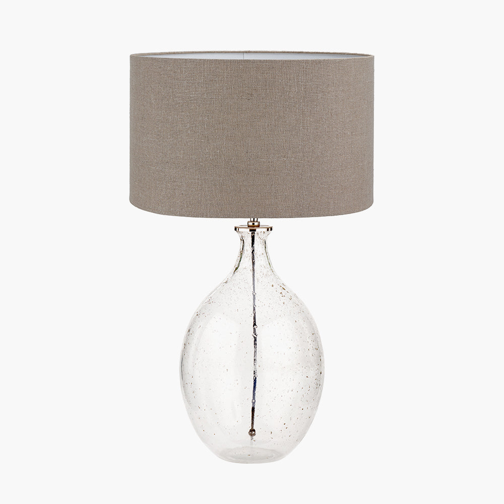 Elysia Bubble Glass and Silver Metal Curved Table Lamp Base with Edward 40cm Natural Linen Cylinder Lampshade