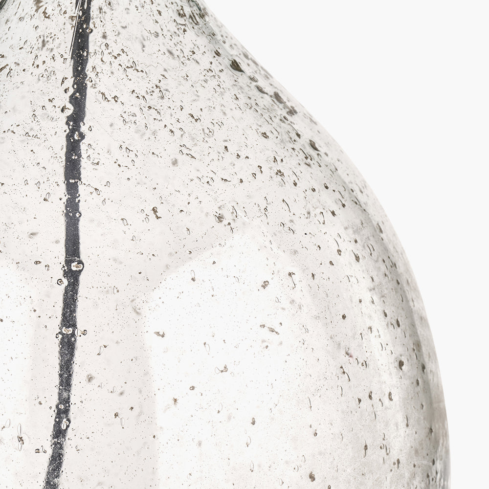 Designed with elegance in mind, the organic curves of the clear bubble glass base beautifully reflect light, creating a mesmerizing ambiance. Enhanced by a sleek brushed silver lamp holder, this lamp effortlessly complements both modern and traditional interiors.