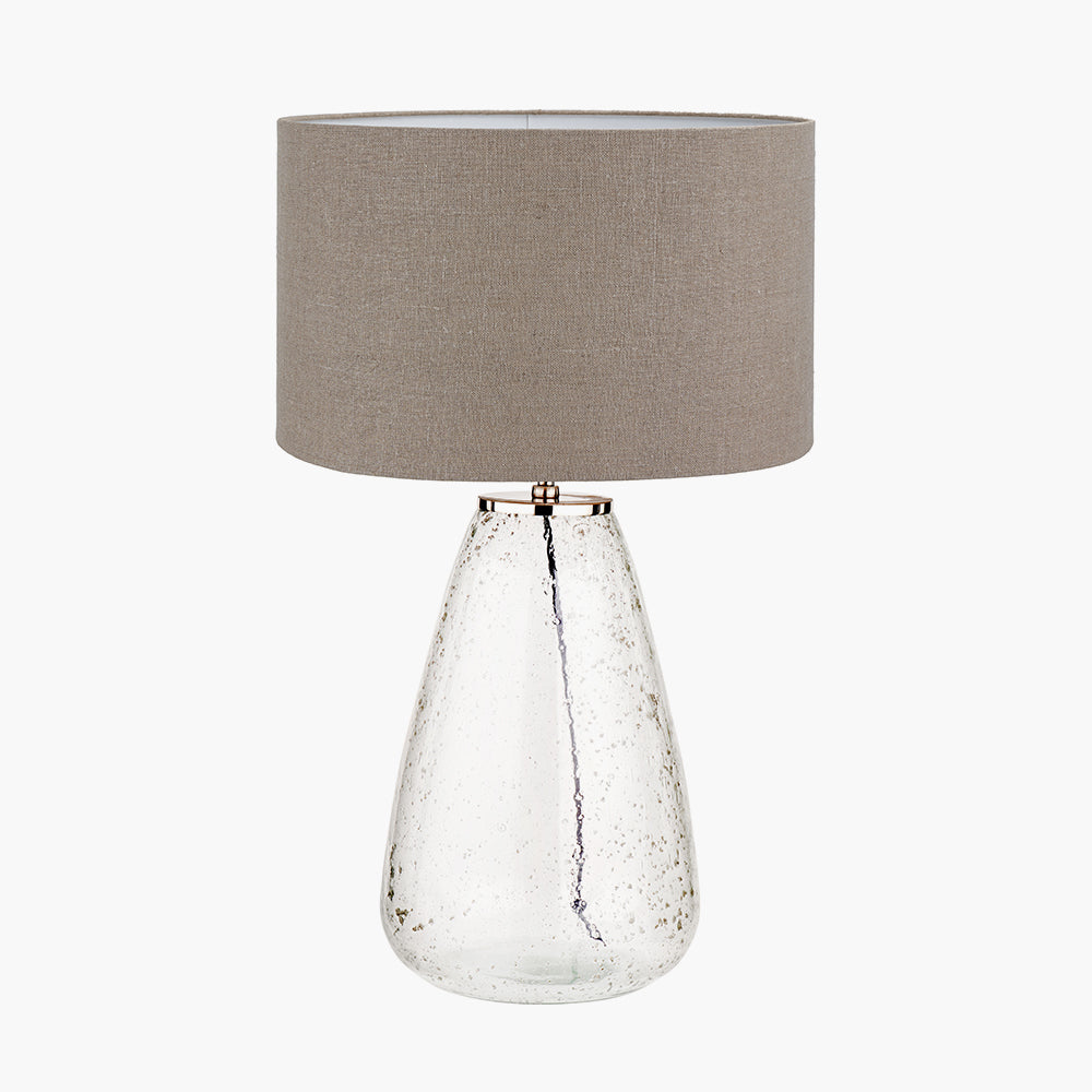 Elysia Bubble Glass and Silver Metal Table Lamp Base with Edward 40cm Natural Linen Cylinder Lampshade